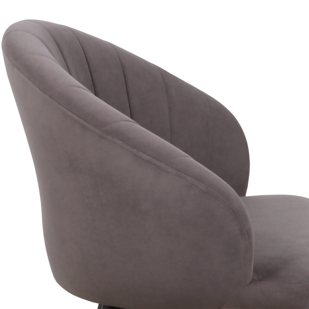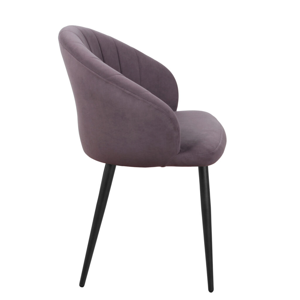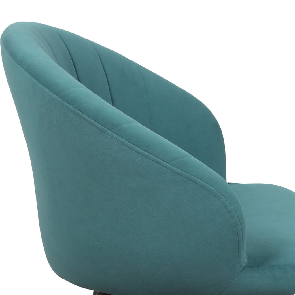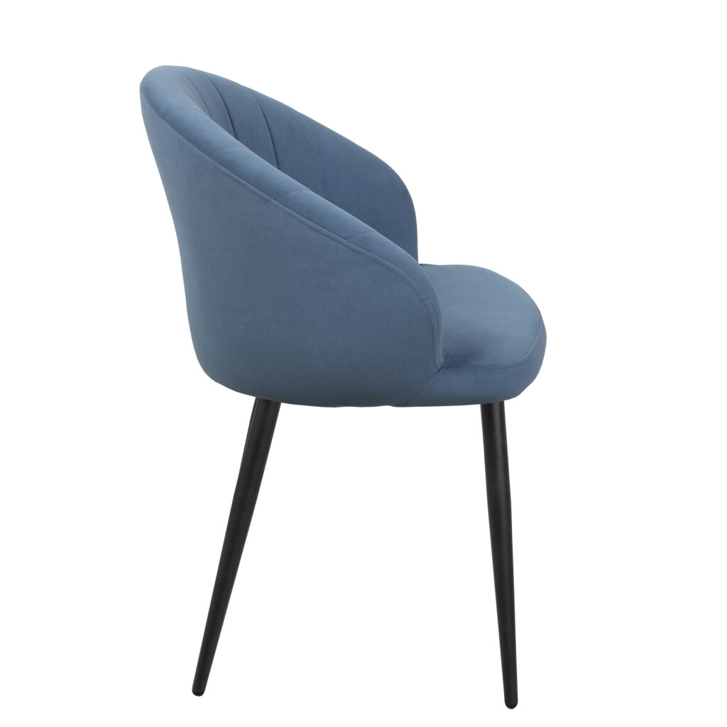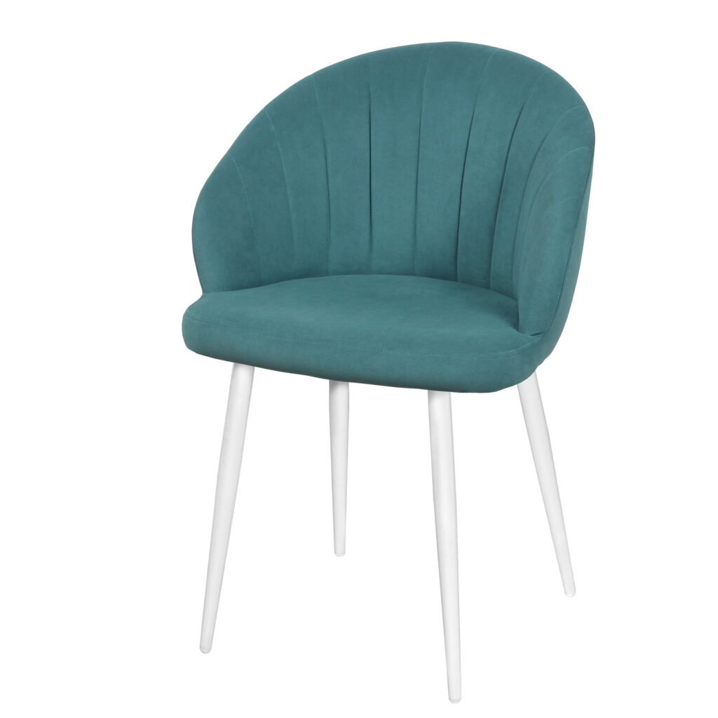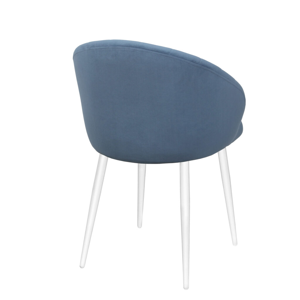 Изогнутая спинка подчёркивает дизайн и формирует комфортную посадку, а мягкие подлокотники делают стул удобным для продолжительного использования. Сиденье и спинка выполнены на металлокаркасе с наполнением из высококачественного пенополиуретана различной толщины и обтянуты тканью. Основание представляет собой цельносварной каркас из стальной трубы Ø32 мм с утонением на ножках.