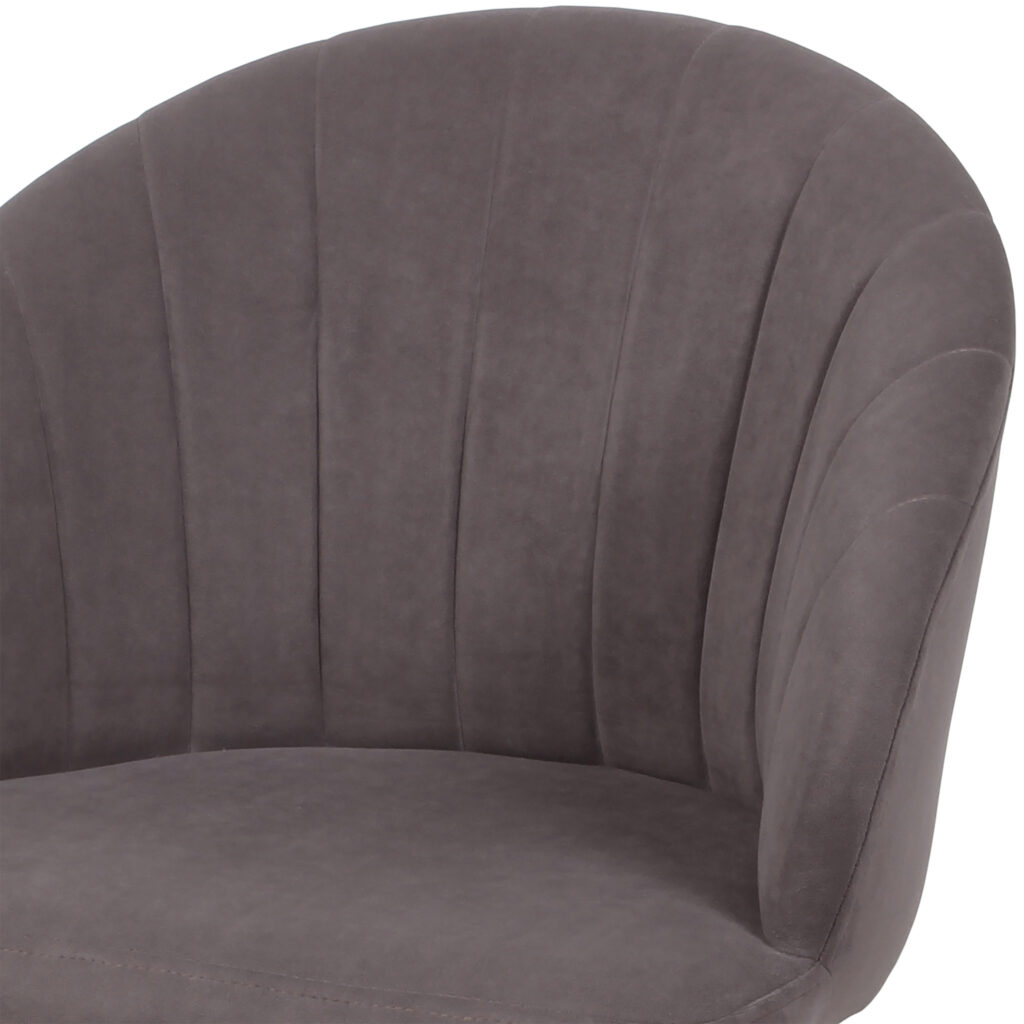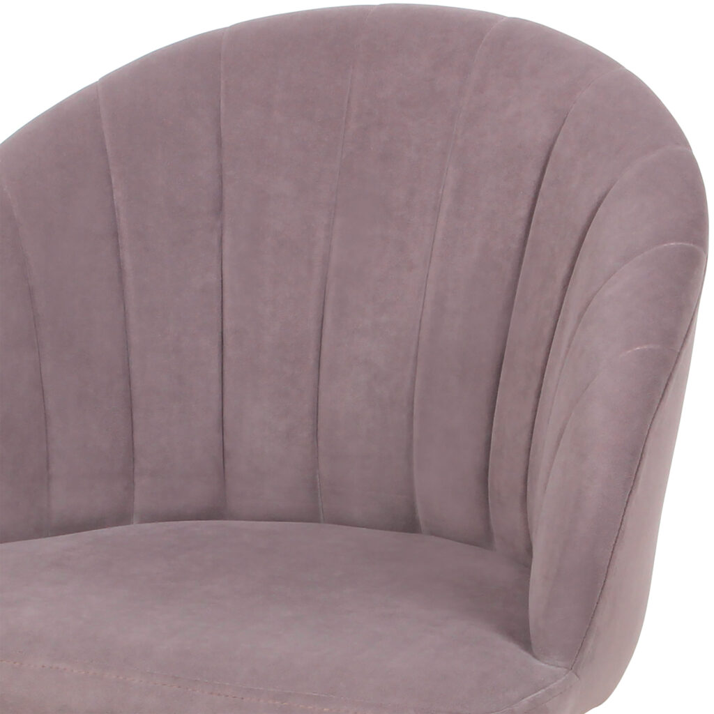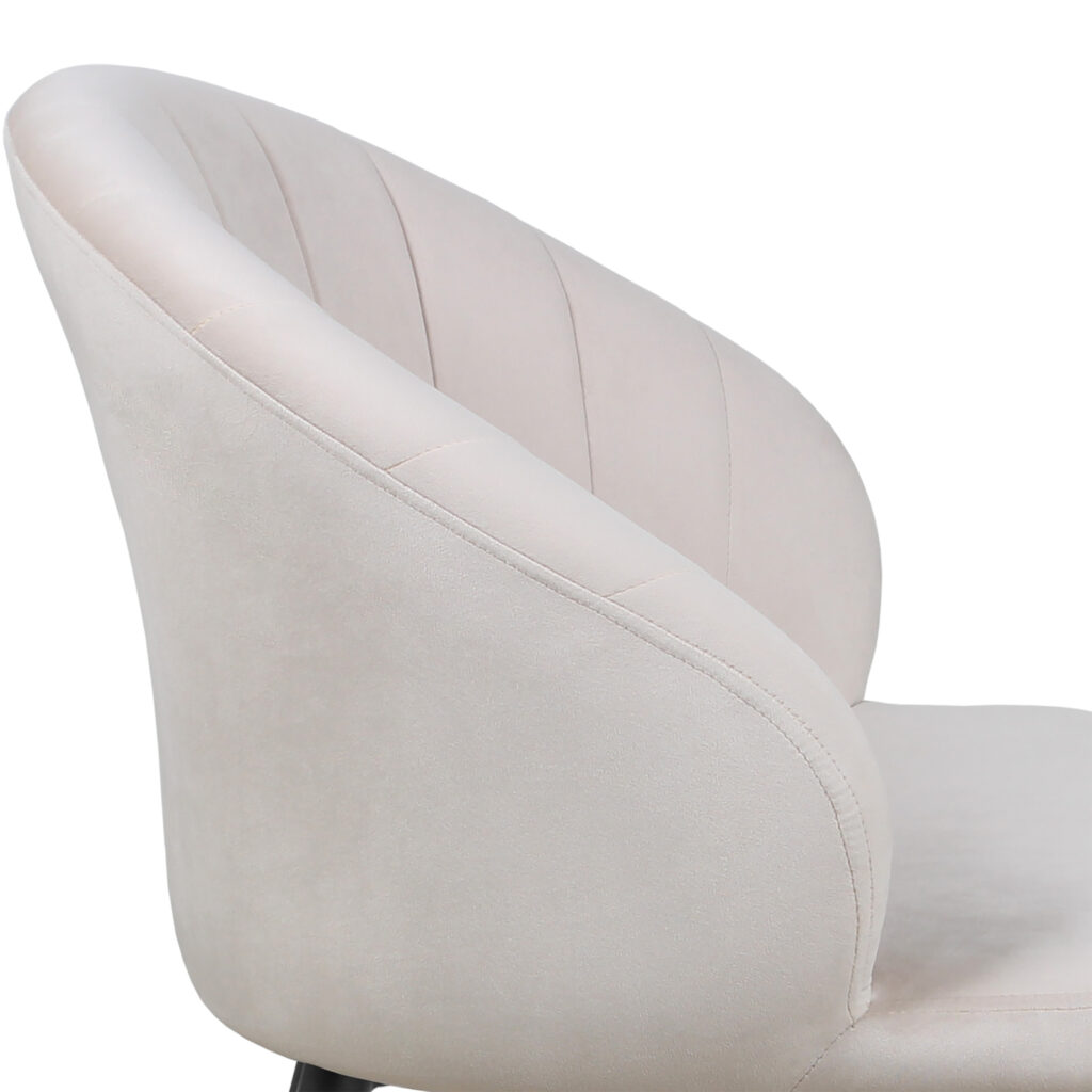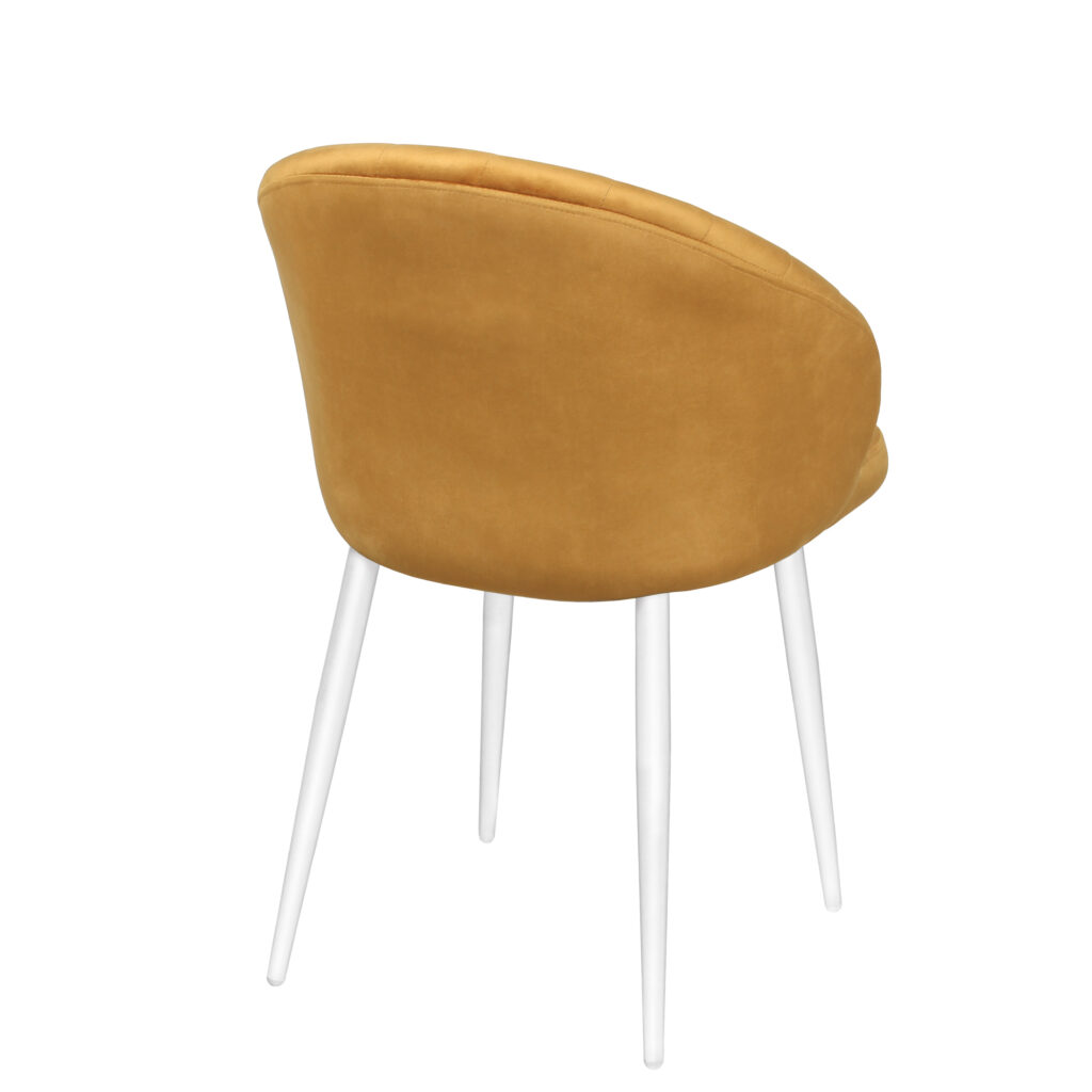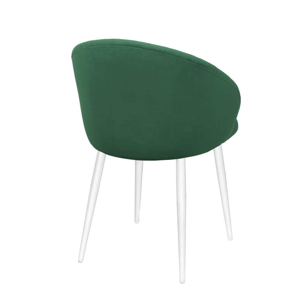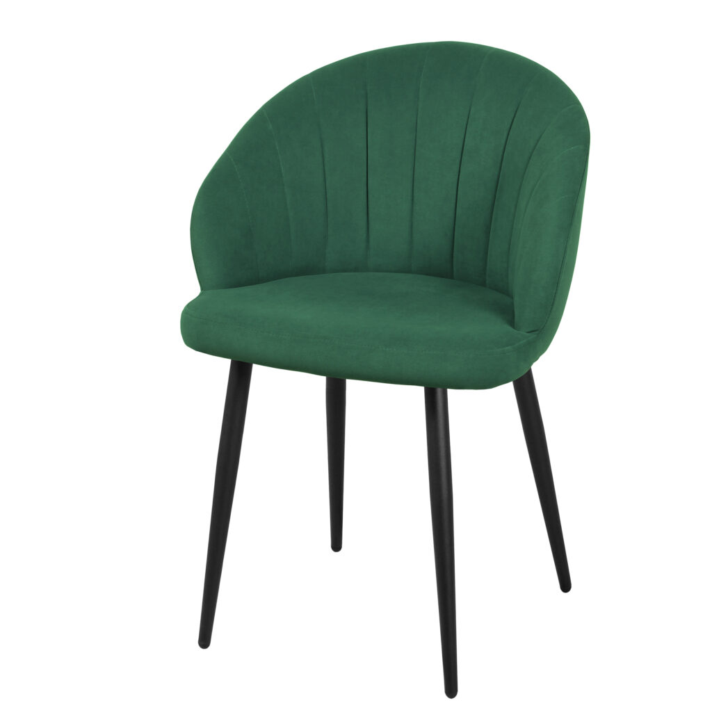 Изогнутая спинка подчёркивает дизайн и формирует комфортную посадку, а мягкие подлокотники делают стул удобным для продолжительного использования. Сиденье и спинка выполнены на металлокаркасе с наполнением из высококачественного пенополиуретана различной толщины и обтянуты тканью. Основание представляет собой цельносварной каркас из стальной трубы Ø32 мм с утонением на ножках.