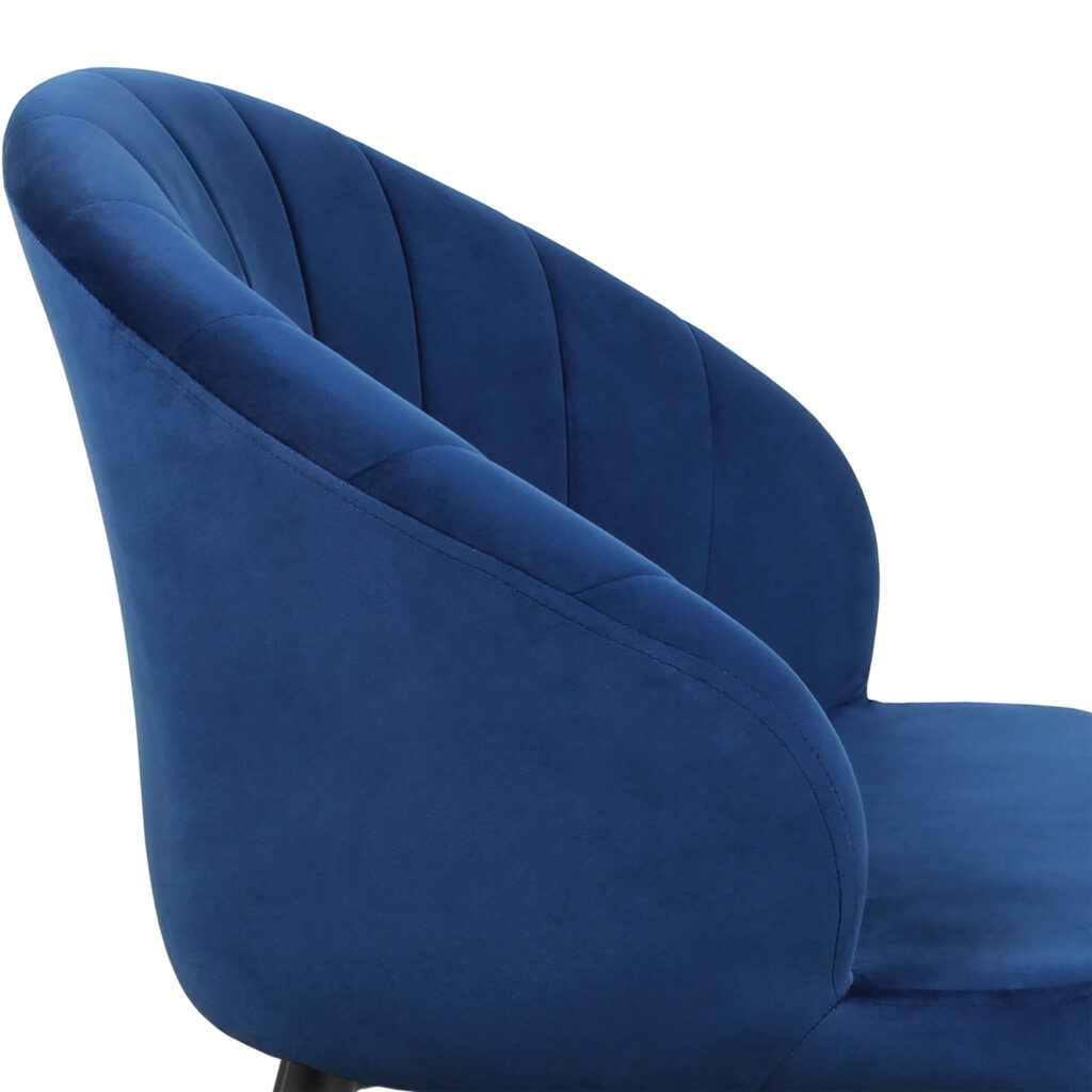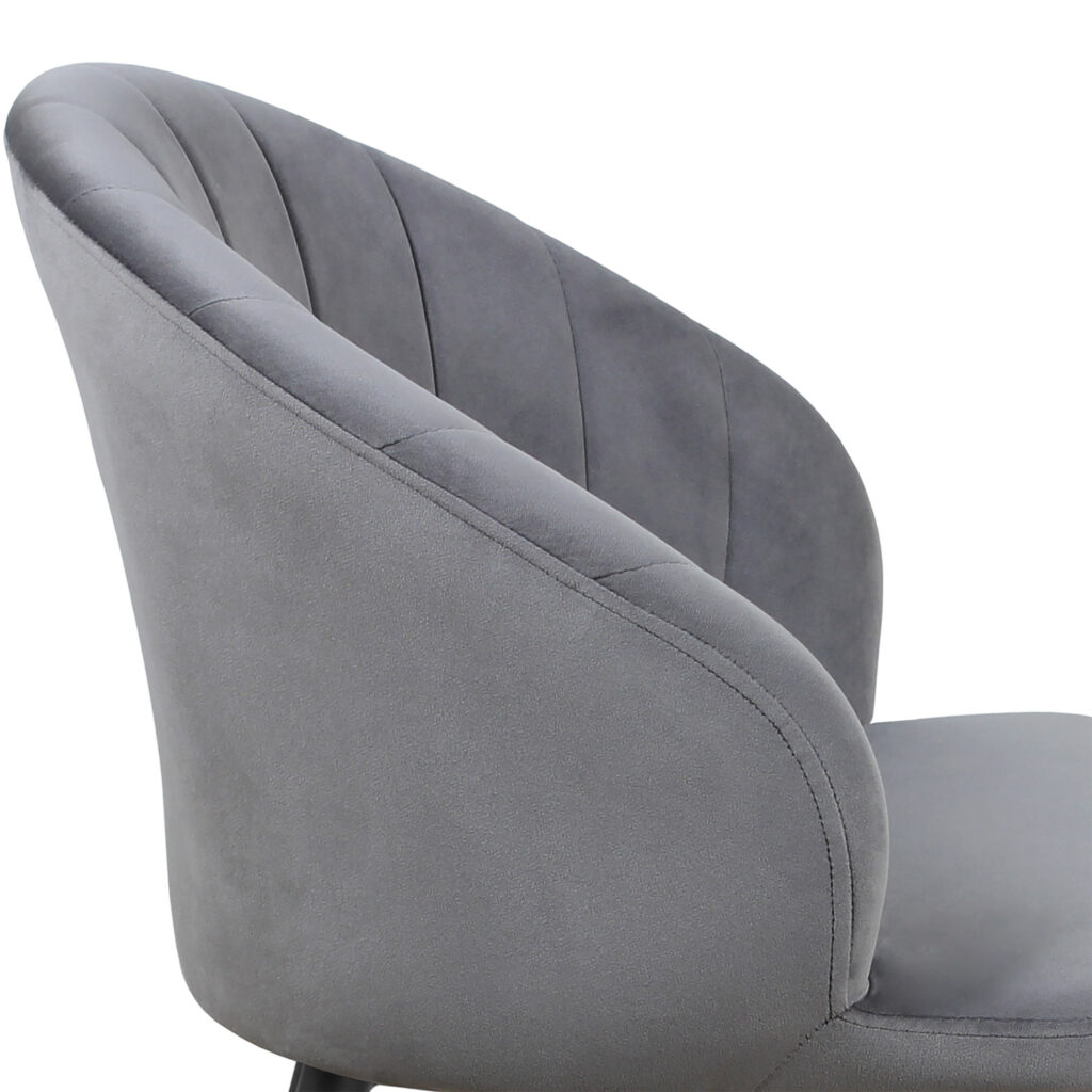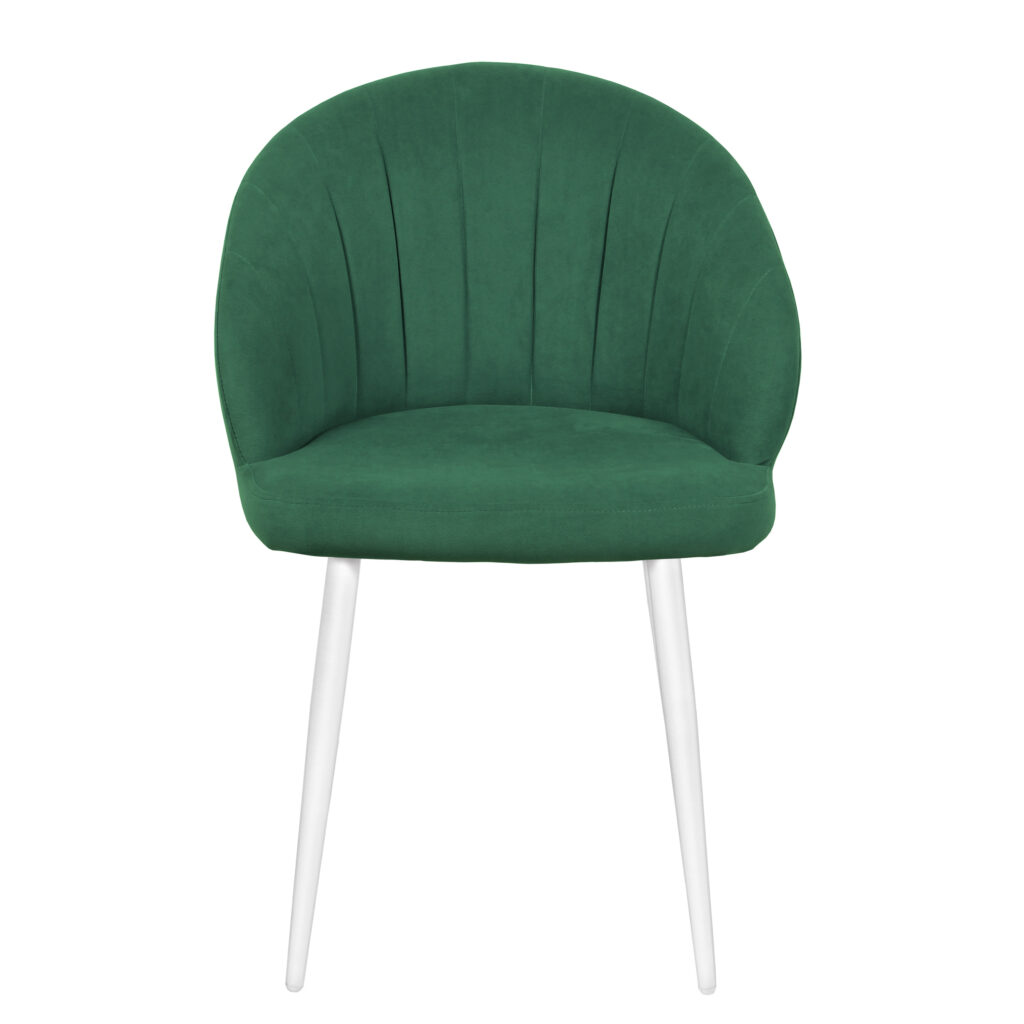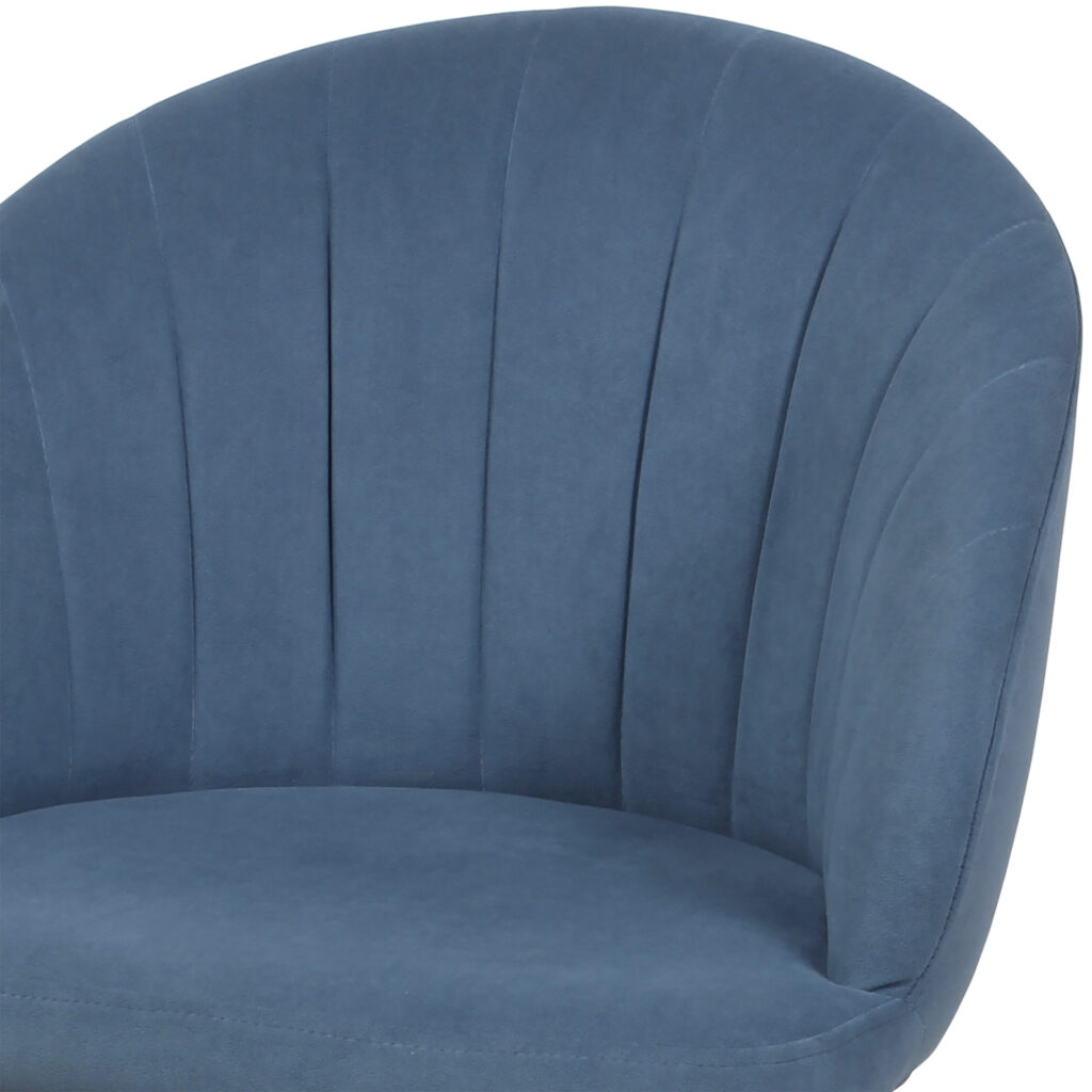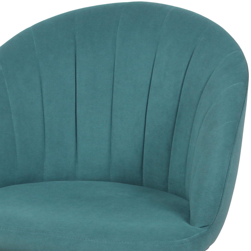 Изогнутая спинка подчёркивает дизайн и формирует комфортную посадку, а мягкие подлокотники делают стул удобным для продолжительного использования. Сиденье и спинка выполнены на металлокаркасе с наполнением из высококачественного пенополиуретана различной толщины и обтянуты тканью. Основание представляет собой цельносварной каркас из стальной трубы Ø32 мм с утонением на ножках.