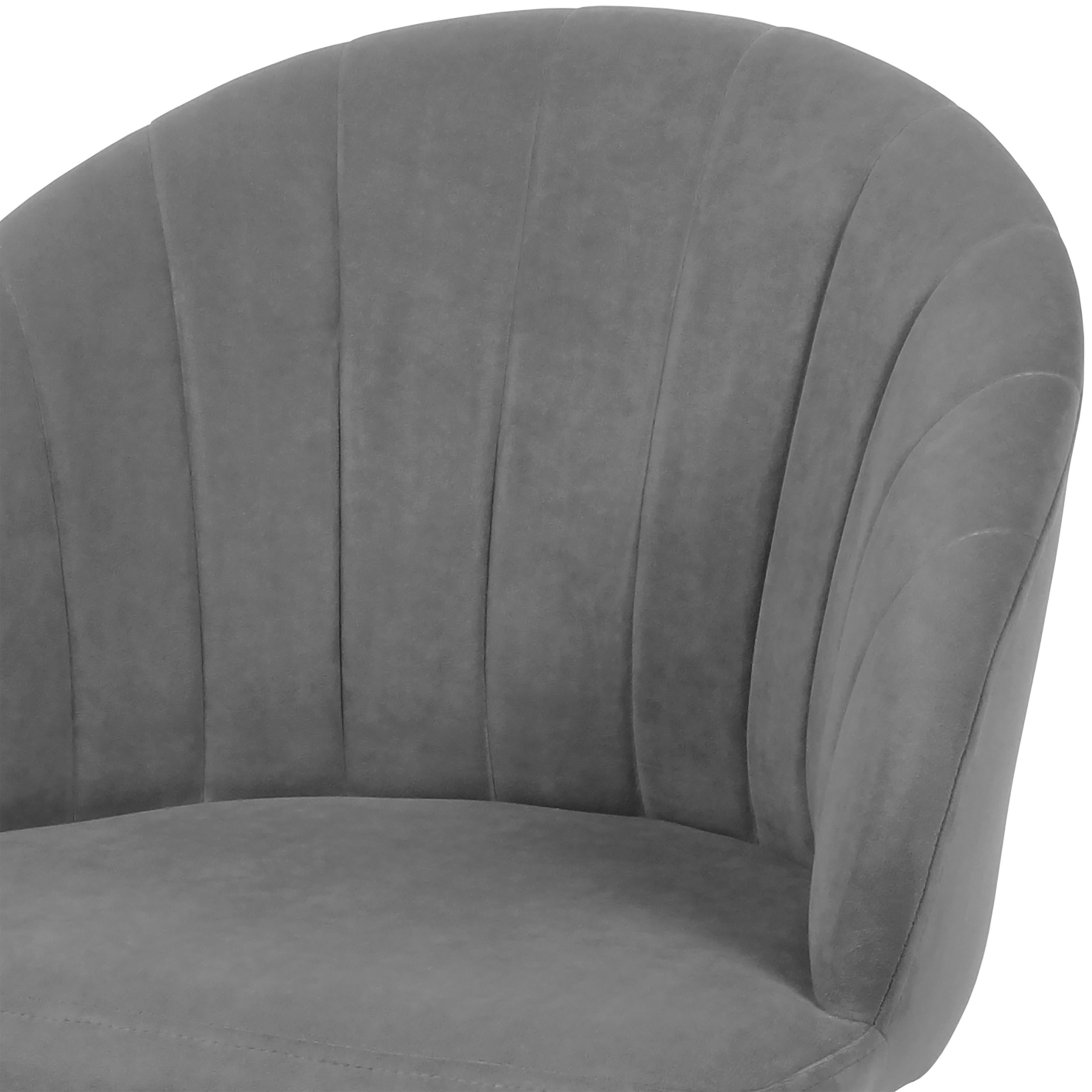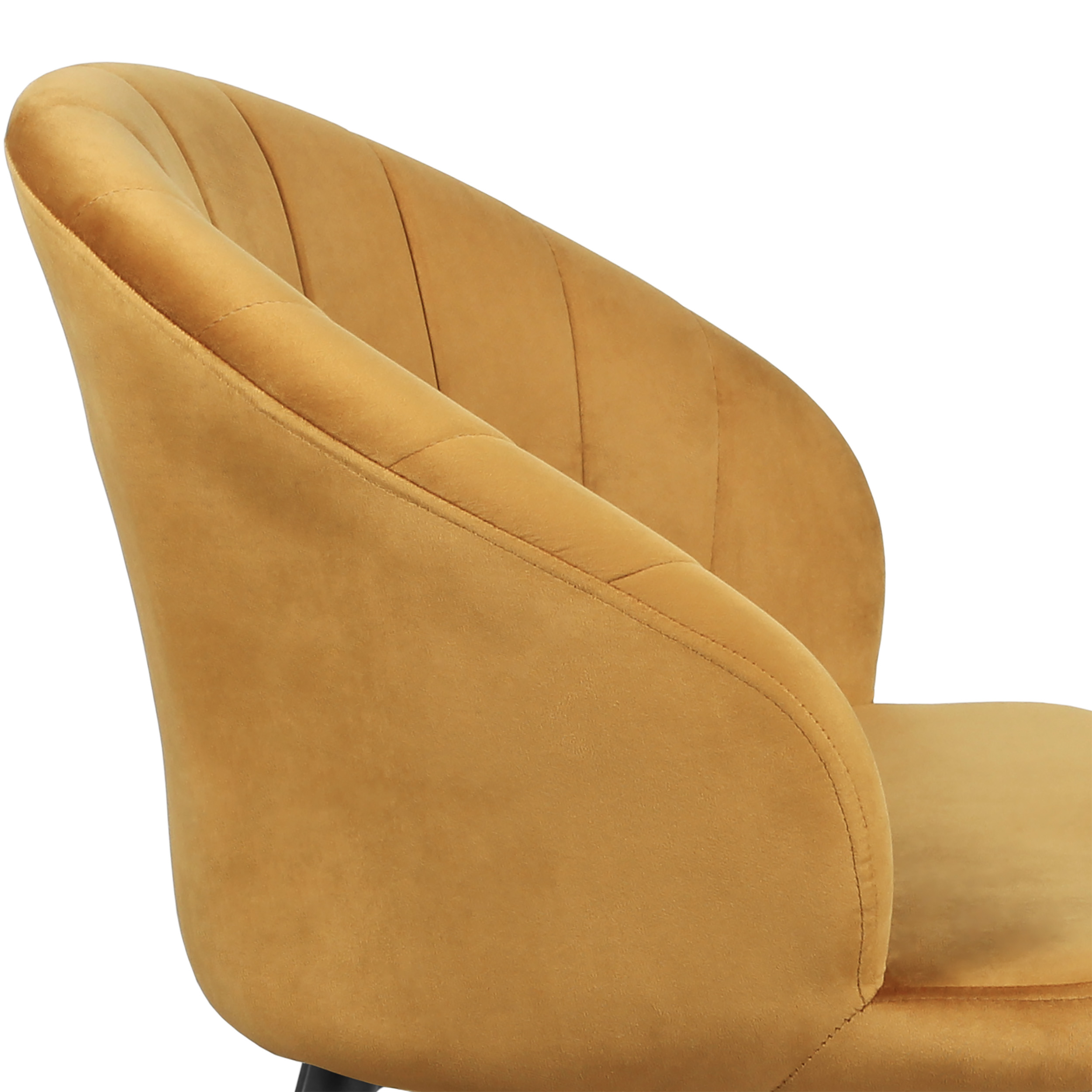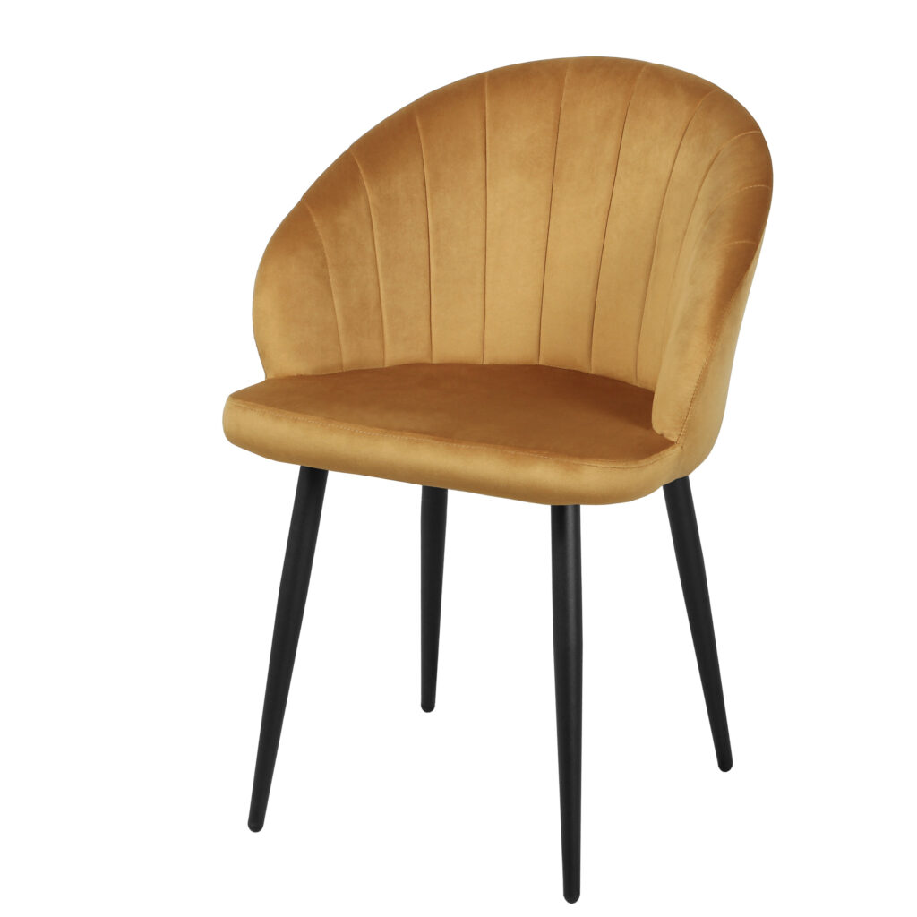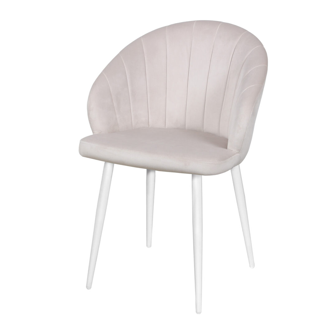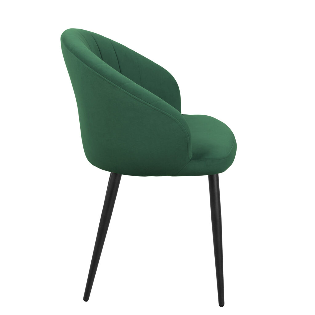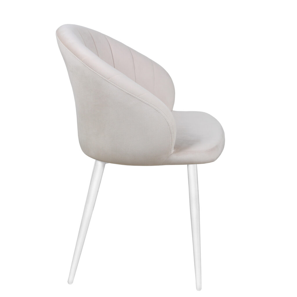 Изогнутая спинка подчёркивает дизайн и формирует комфортную посадку, а мягкие подлокотники делают стул удобным для продолжительного использования. Сиденье и спинка выполнены на металлокаркасе с наполнением из высококачественного пенополиуретана различной толщины и обтянуты тканью. Основание представляет собой цельносварной каркас из стальной трубы Ø32 мм с утонением на ножках.