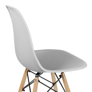 Сиденье и спинка изготовлены из высокопрочного литого полипропилена, устойчивого к нагрузкам и износу. Каркас основания выполнен из комбинации металлических элементов и массива бука, что придаёт конструкции устойчивость и визуальный баланс. Стул рассчитан на нагрузку до 95 кг и поставляется с комплектом для сборки.