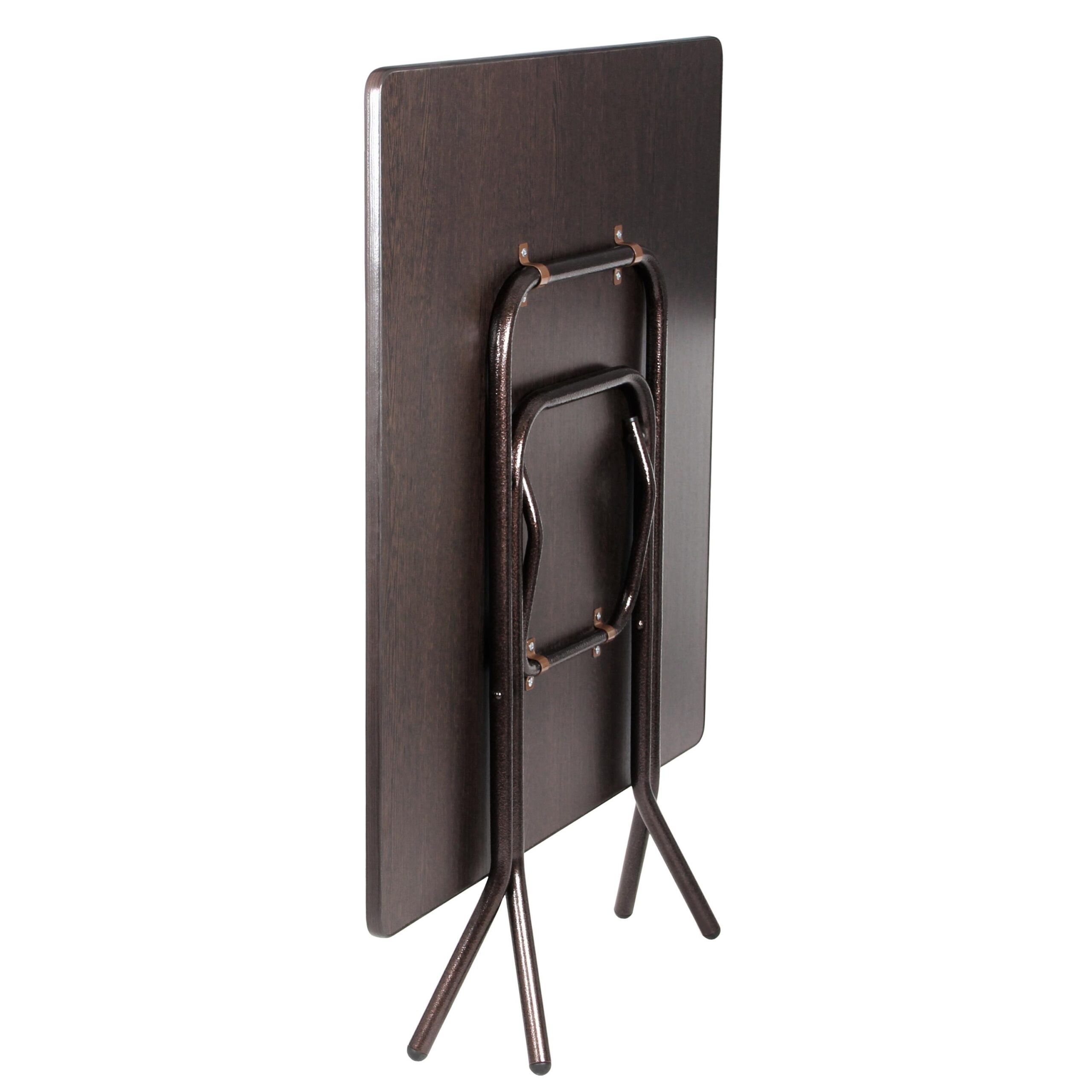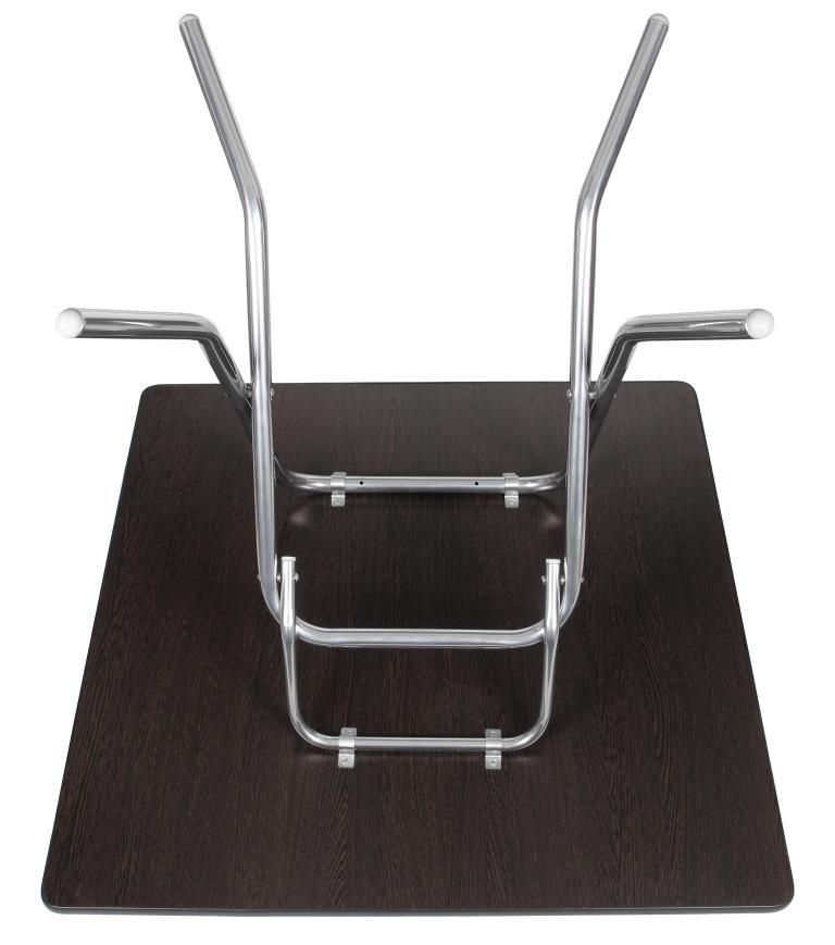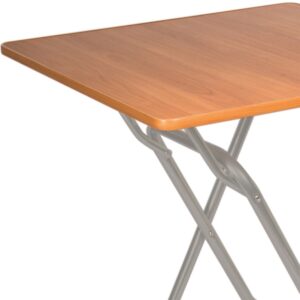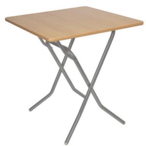 Складной стол СРП-С-104-01 со столешницей 700×700 мм предназначен для использования в помещениях, где важны компактные размеры, устойчивость конструкции и возможность удобного хранения. Столешница выполнена из ЛДСП толщиной 16 мм и с обеих сторон покрыта меламиновой плёнкой, имитирующей фактуру ценных пород дерева. Квадратная форма с закруглёнными углами делает стол безопасным в эксплуатации, а врезная Т-образная кромка аккуратно защищает торцы от повреждений. Основание представлено прочным металлическим каркасом из трубы с полимерным покрытием, рассчитанным на регулярное использование, ножки укомплектованы пластиковыми заглушками Ø25 мм для защиты напольного покрытия.