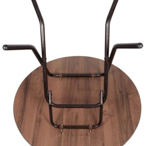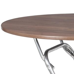 Складной стол СРП-С-104 со столешницей диаметром 900 мм подходит для помещений, где требуется компактная и мобильная мебель с устойчивой конструкцией. Круглая столешница изготовлена из ЛДСП толщиной 16 мм и покрыта меламиновой плёнкой с декоративным эффектом под ценные породы дерева. Врезная Т-образная кромка аккуратно защищает край столешницы и повышает её износостойкость. Стол установлен на прочный металлический каркас из трубы с полимерным покрытием, который обеспечивает стабильность при эксплуатации. Ножки оснащены пластиковыми заглушками Ø25 мм для корректной установки и защиты пола. Допустимая равномерно распределённая нагрузка на конструкцию — до 20 кг. Металлокаркас выпускается исключительно в порошковой окраске (эмаль). Обратите внимание: в отдельных случаях возможна доплата за варианты исполнения каркаса, подробную информацию рекомендуется уточнять у консультантов.