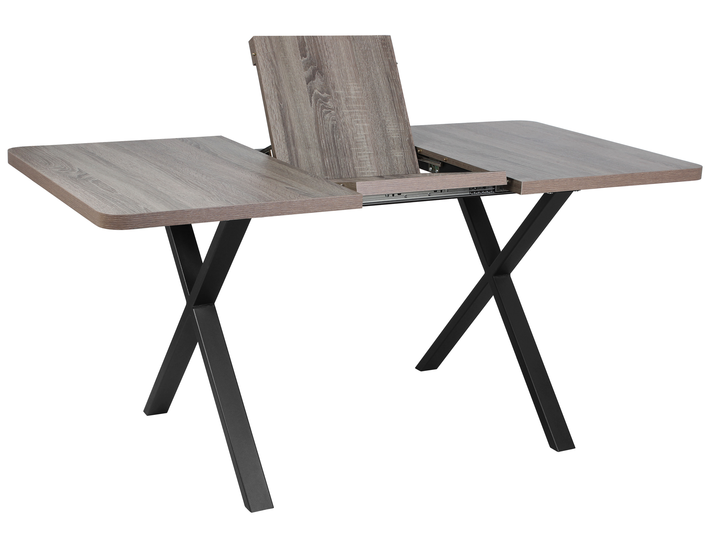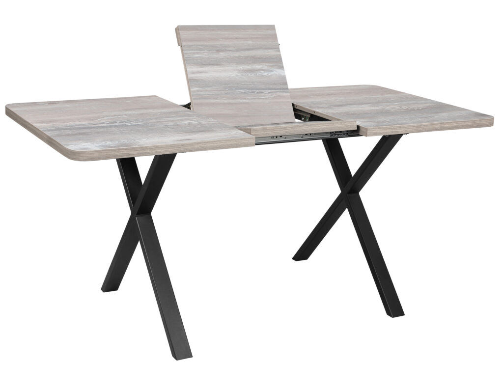 Раздвижной обеденный стол «Кросс-60 Раунд» — практичное решение для современных интерьеров, оснащённое синхронным механизмом раздвижения и вставкой-бабочкой, увеличивающей столешницу на 41 см; модель имеет скруглённые углы радиусом 50 мм и прочное основание с крестообразными опорами из профильной трубы с регулируемыми ножками и полимерным покрытием, стол легко собирается и рассчитан на равномерную нагрузку до 25 кг.
