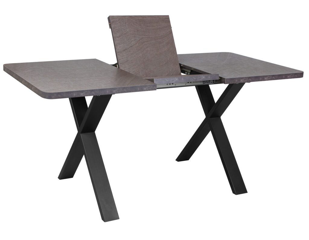 Раздвижной обеденный стол «Кросс-90 Раунд» разработан для просторных интерьеров и отличается массивным крестообразным основанием. Модель оснащена синхронным механизмом раздвижения, а вставка «бабочка» увеличивает ширину столешницы на 41 см. Столешница выполнена из ЛДСП общей толщиной 32 мм с покрытием из износостойкого HPL-пластика и имеет скруглённые углы радиусом 50 мм.