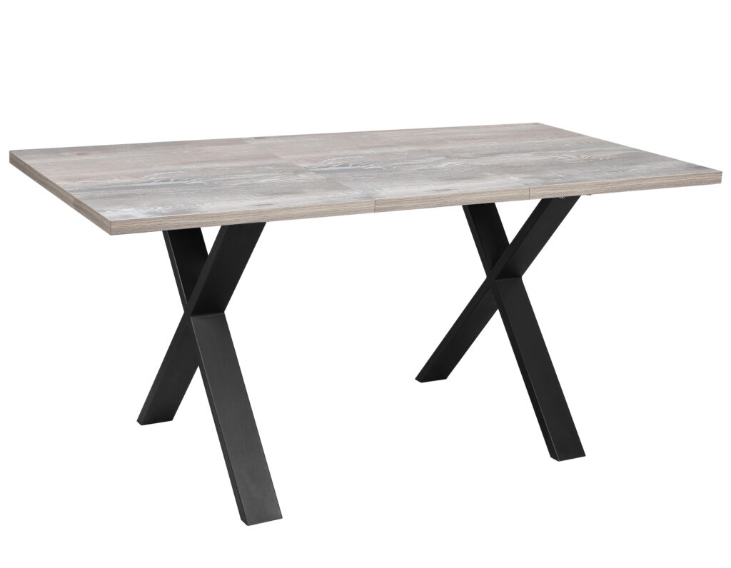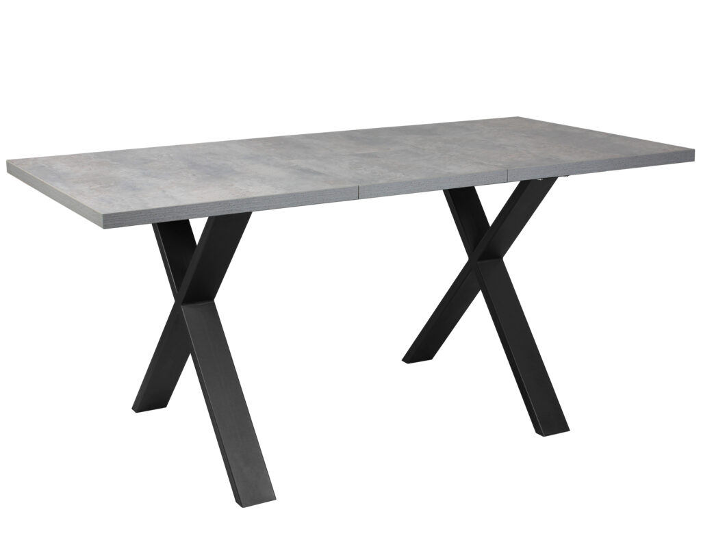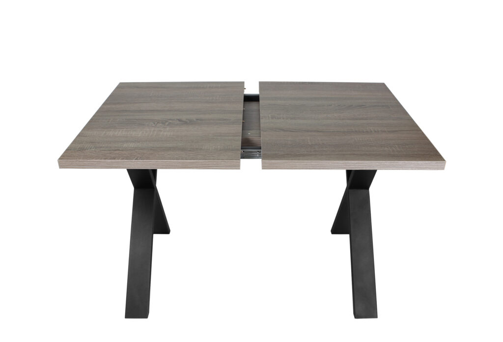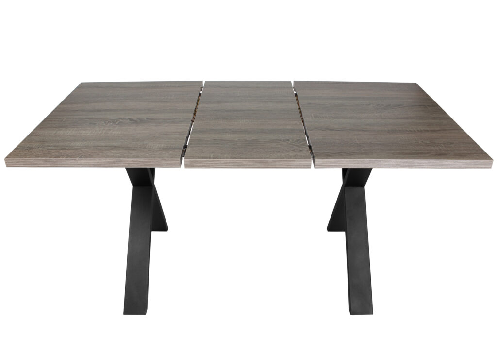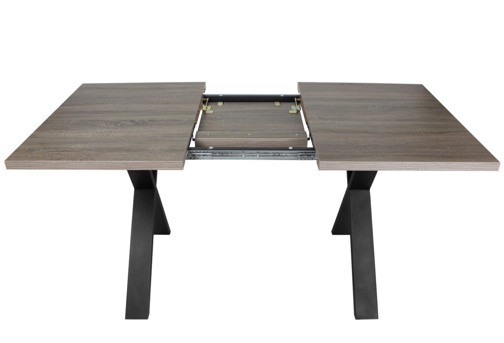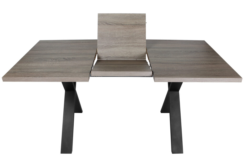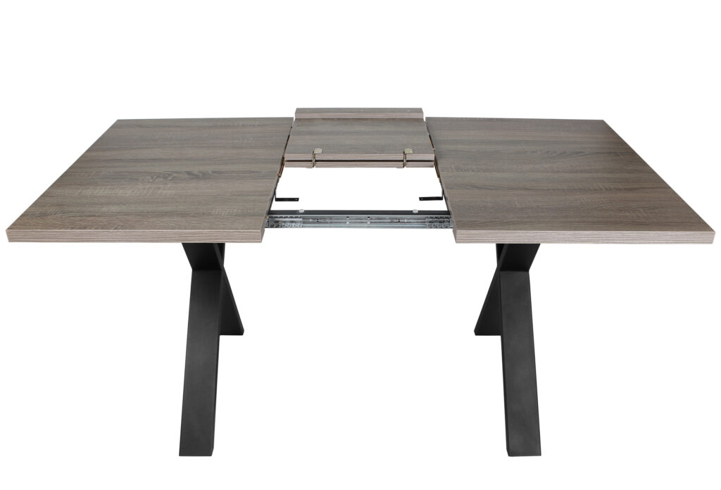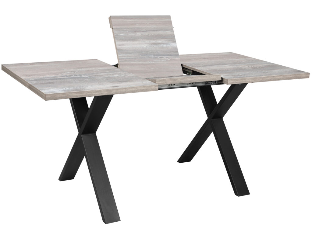 Раздвижной обеденный стол «Кросс-90» сочетает функциональность и выразительный внешний вид, подходящий для современных интерьеров кухни и гостиной. Модель оснащена синхронным механизмом раздвижения, а вставка-бабочка позволяет увеличить ширину столешницы на 41 см.