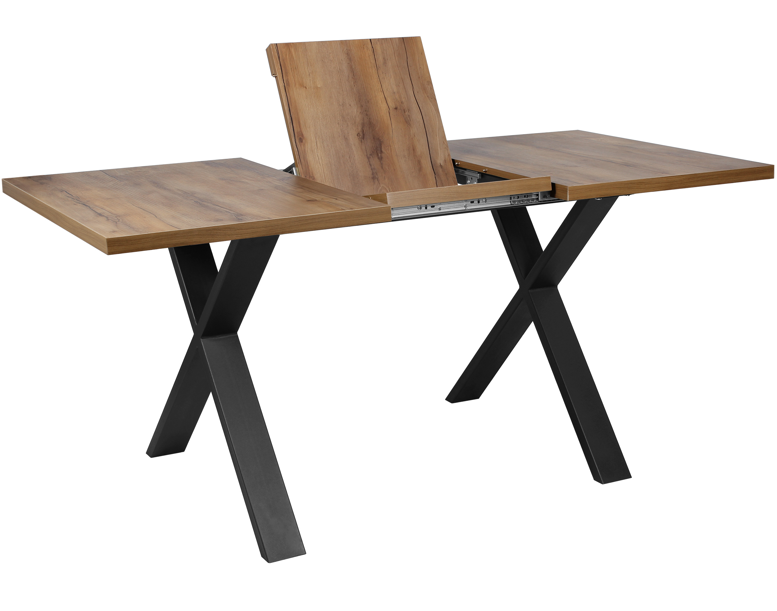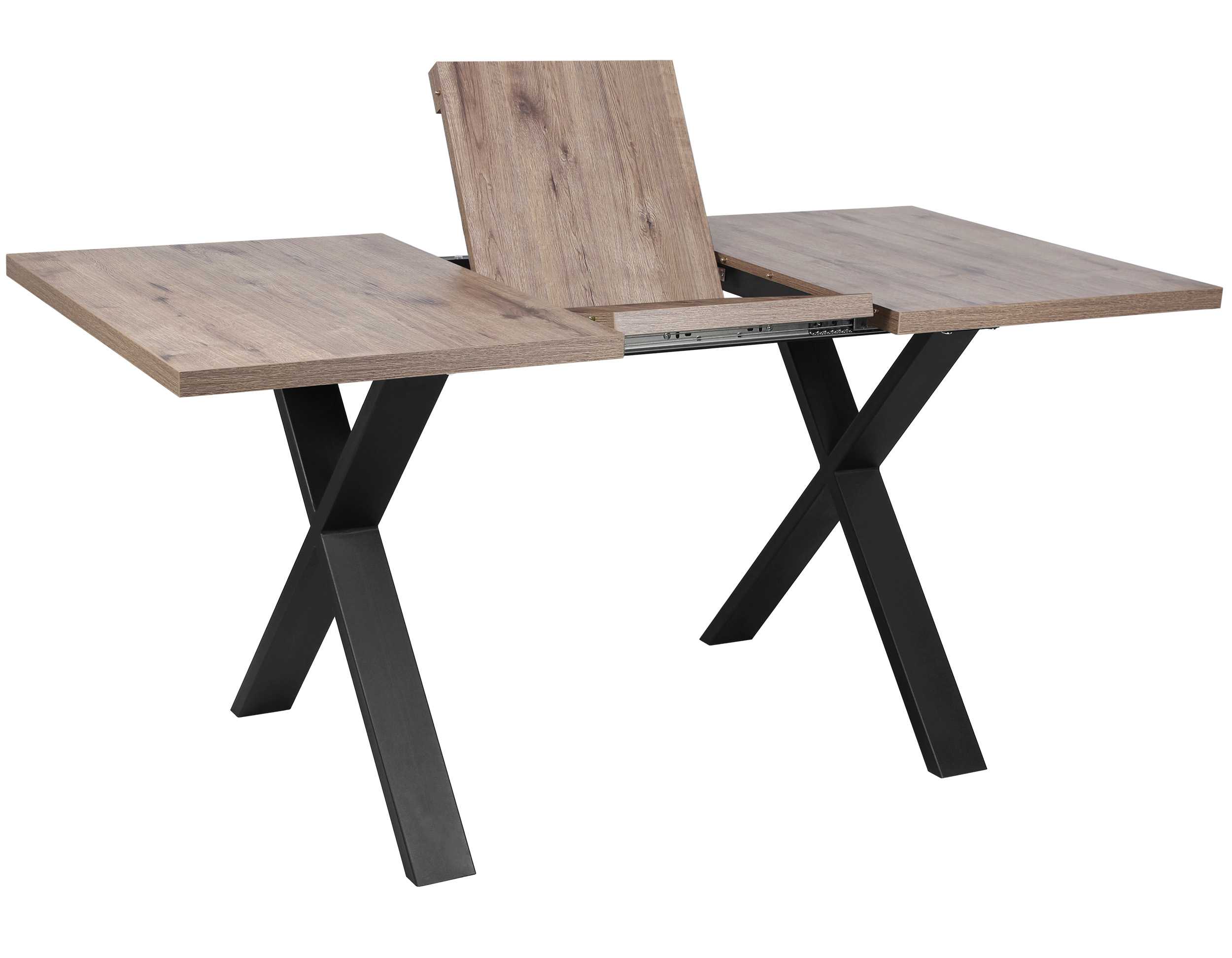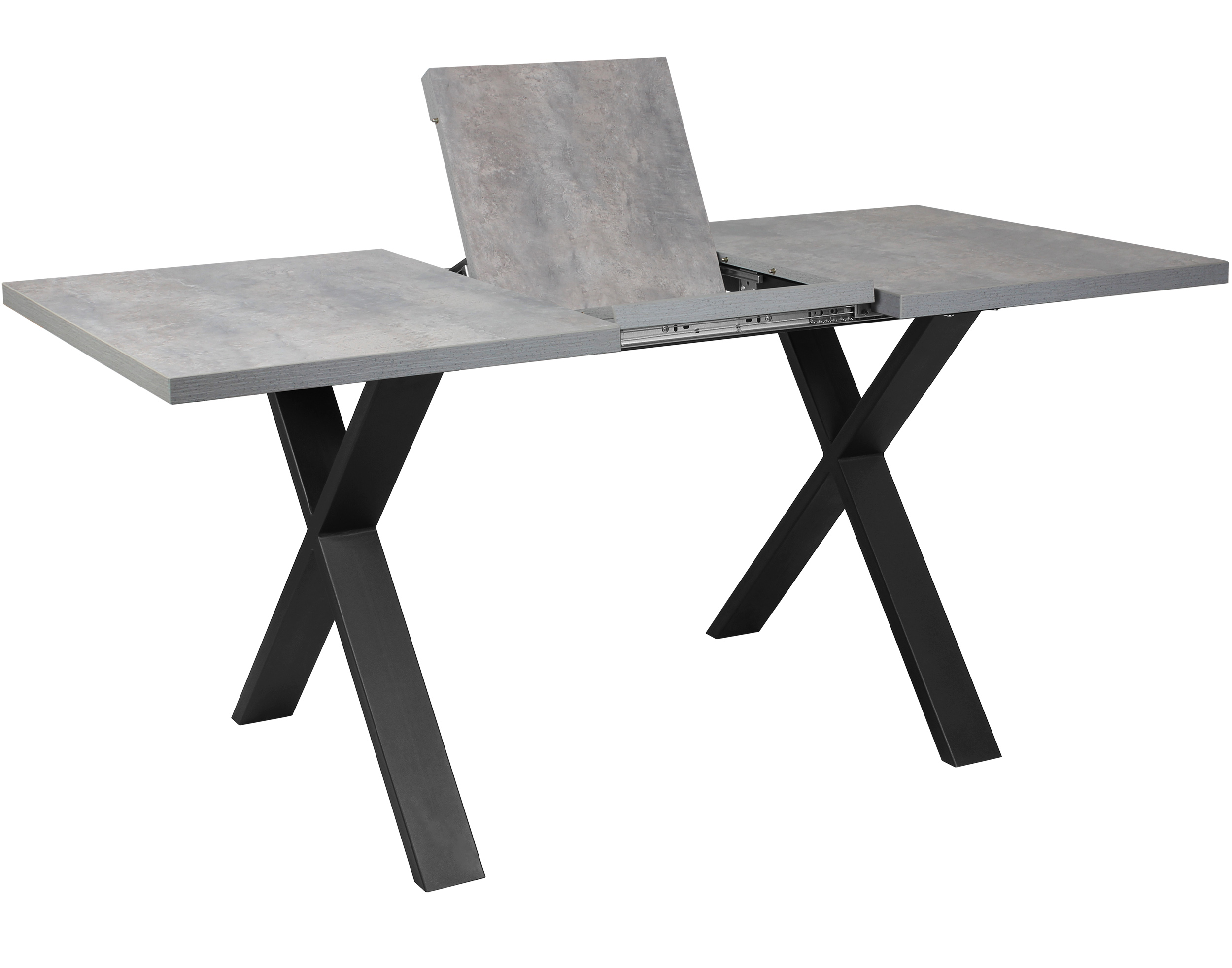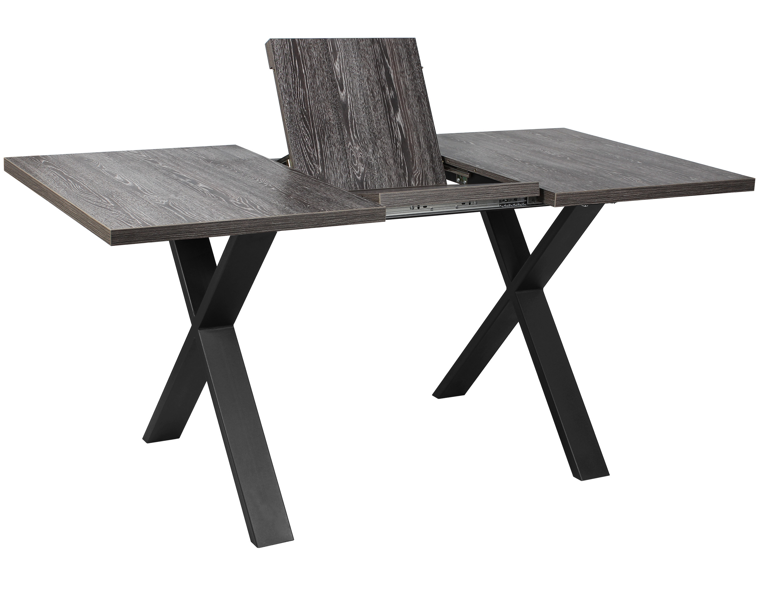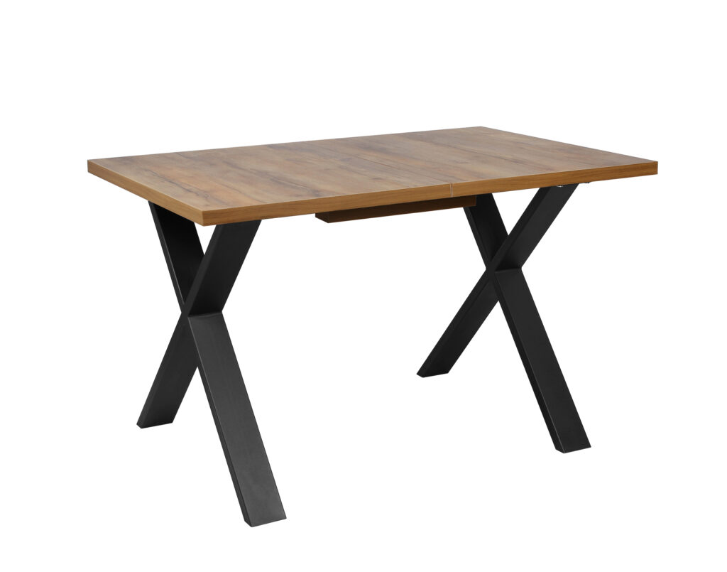 Раздвижной обеденный стол «Кросс-90» сочетает функциональность и выразительный внешний вид, подходящий для современных интерьеров кухни и гостиной. Модель оснащена синхронным механизмом раздвижения, а вставка-бабочка позволяет увеличить ширину столешницы на 41 см.