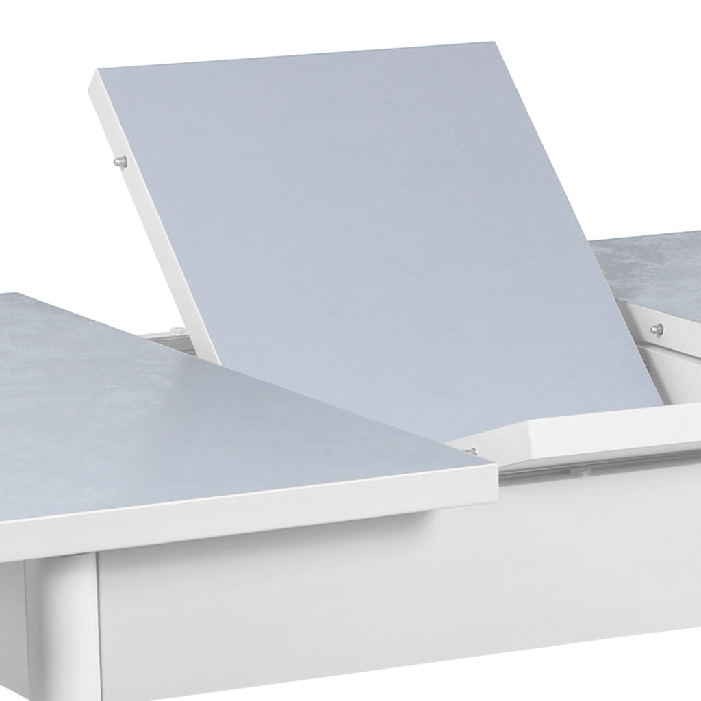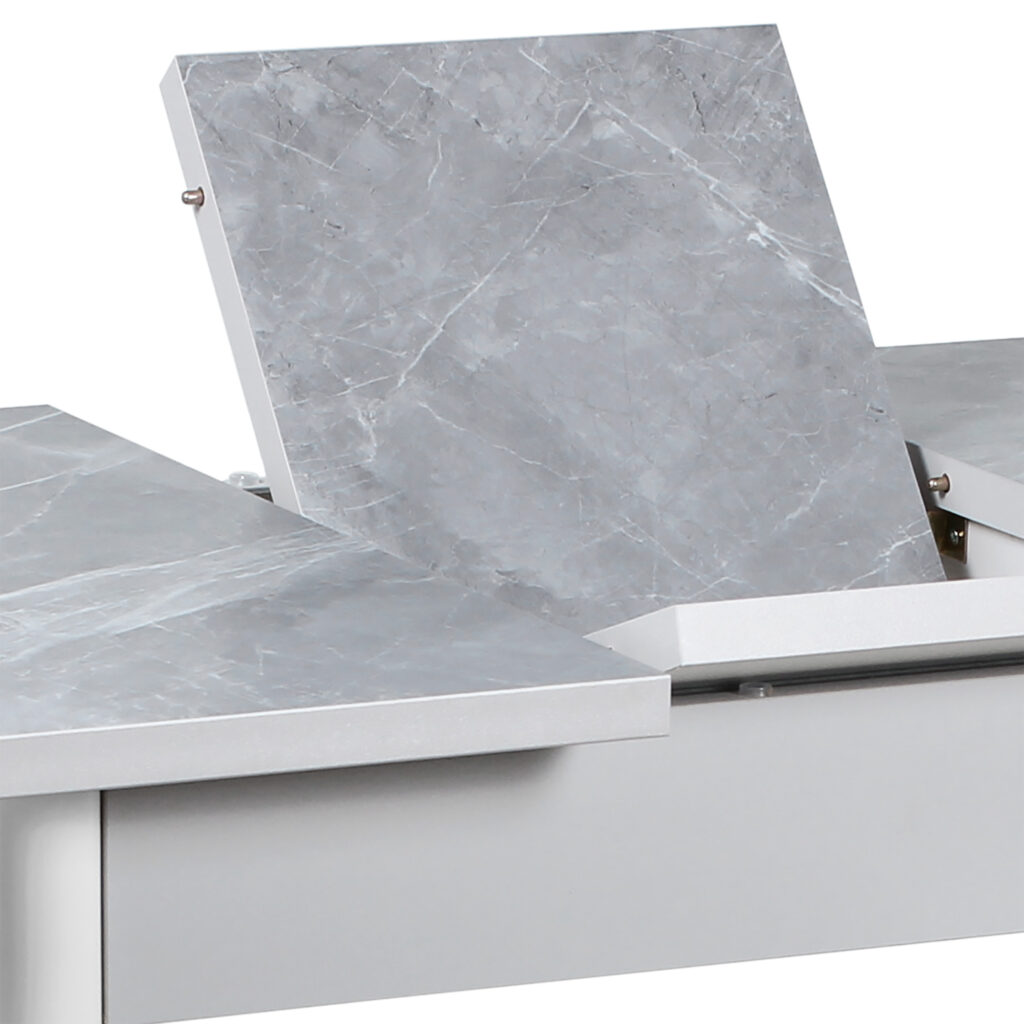 Стол «Остин» — раздвижной обеденный стол с оригинальной столешницей, облицованной прочным HPL-пластиком толщиной 0,6 мм. Модель оснащена синхронным механизмом раздвижения, а вставка-бабочка позволяет увеличить ширину столешницы на 28–30 см, что делает стол удобным для приёма гостей и повседневного использования.