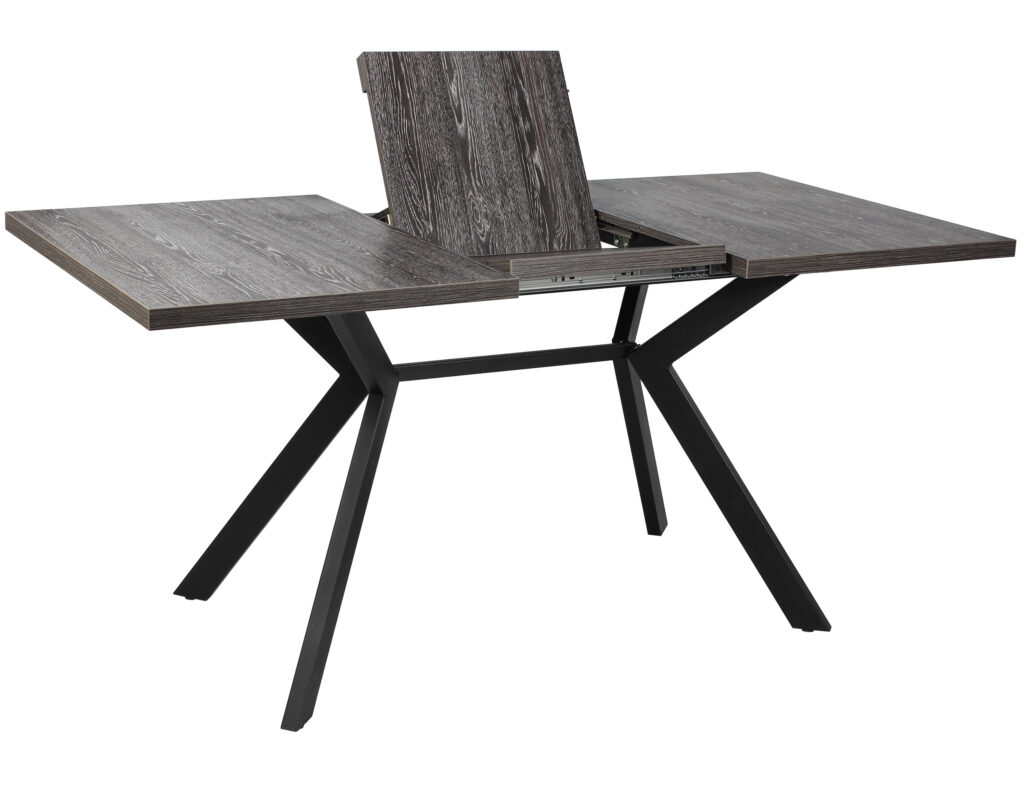Раздвижной обеденный стол «Спайдер» подходит для кухни и гостиной любой площади и отличается выразительным дизайном с оригинальной геометрией основания. Встроенная вставка типа «бабочка» позволяет увеличить ширину столешницы на 41 см, что удобно при приёме гостей. Синхронный механизм раздвижения обеспечивает плавную и удобную трансформацию столешницы.