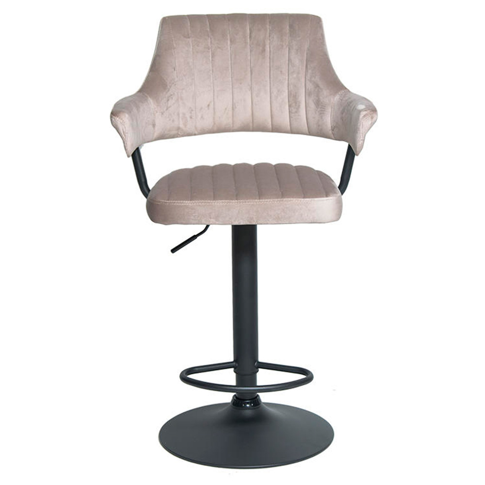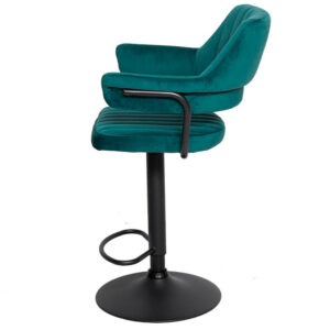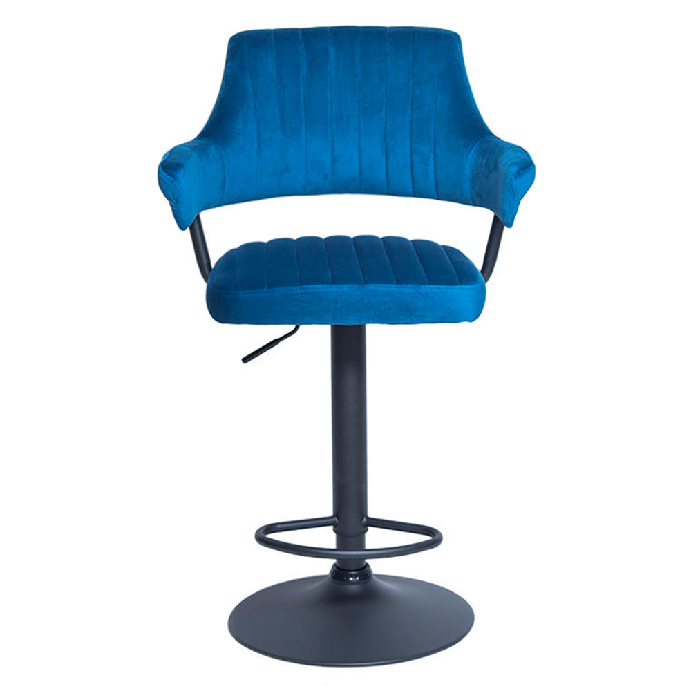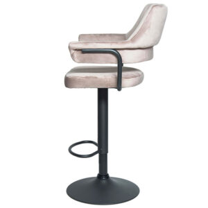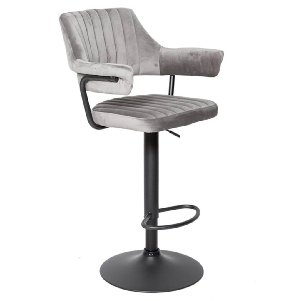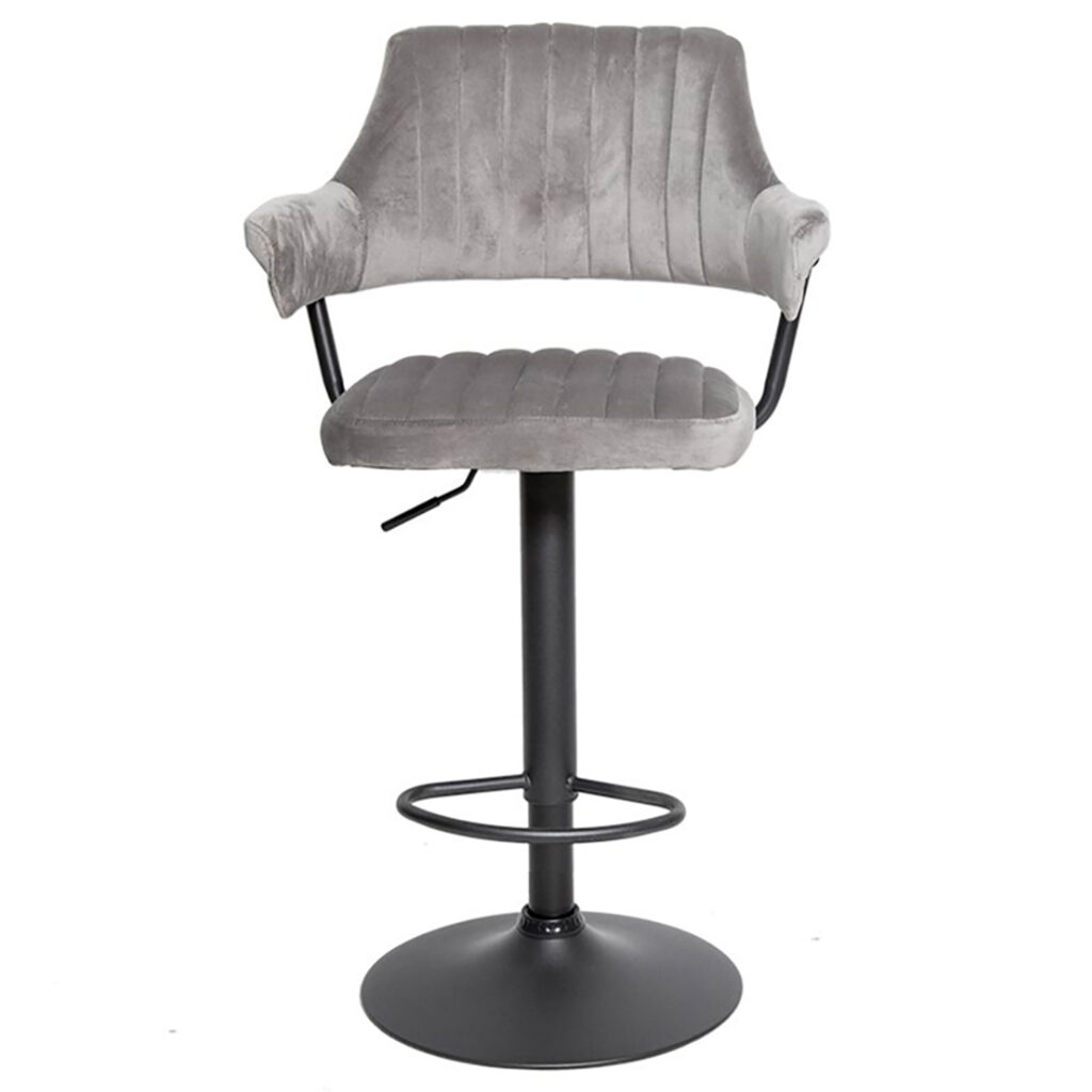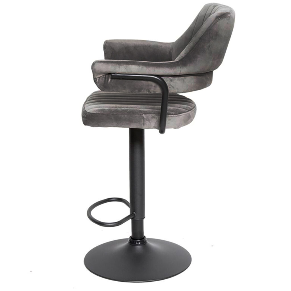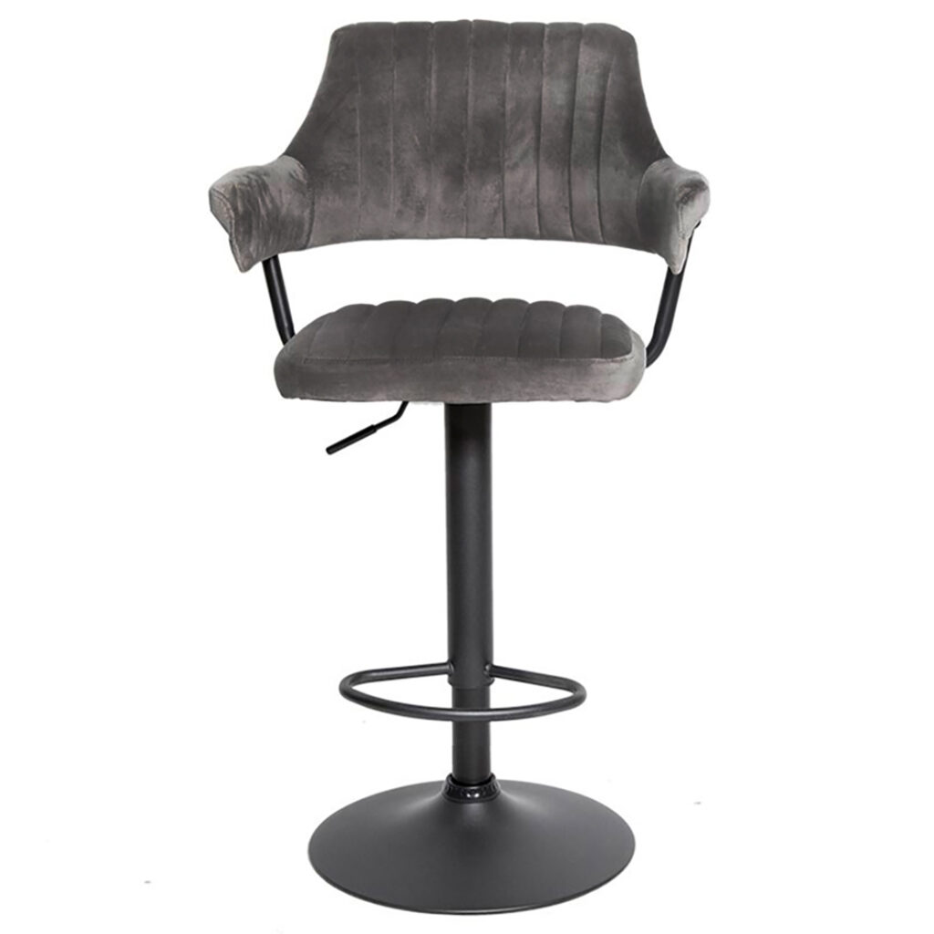Сиденье и спинка имеют мягкую форму и дополнены стёжкой, благодаря чему посадка остаётся комфортной даже при длительном использовании. Обивка выполнена из велюра с коротким ворсом, приятного на ощупь и аккуратно выглядящего в интерьере. Модель подходит как для коммерческих заведений, так и для домашнего использования в зоне барной стойки.
