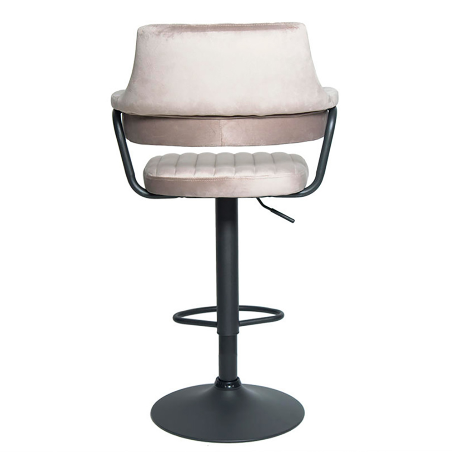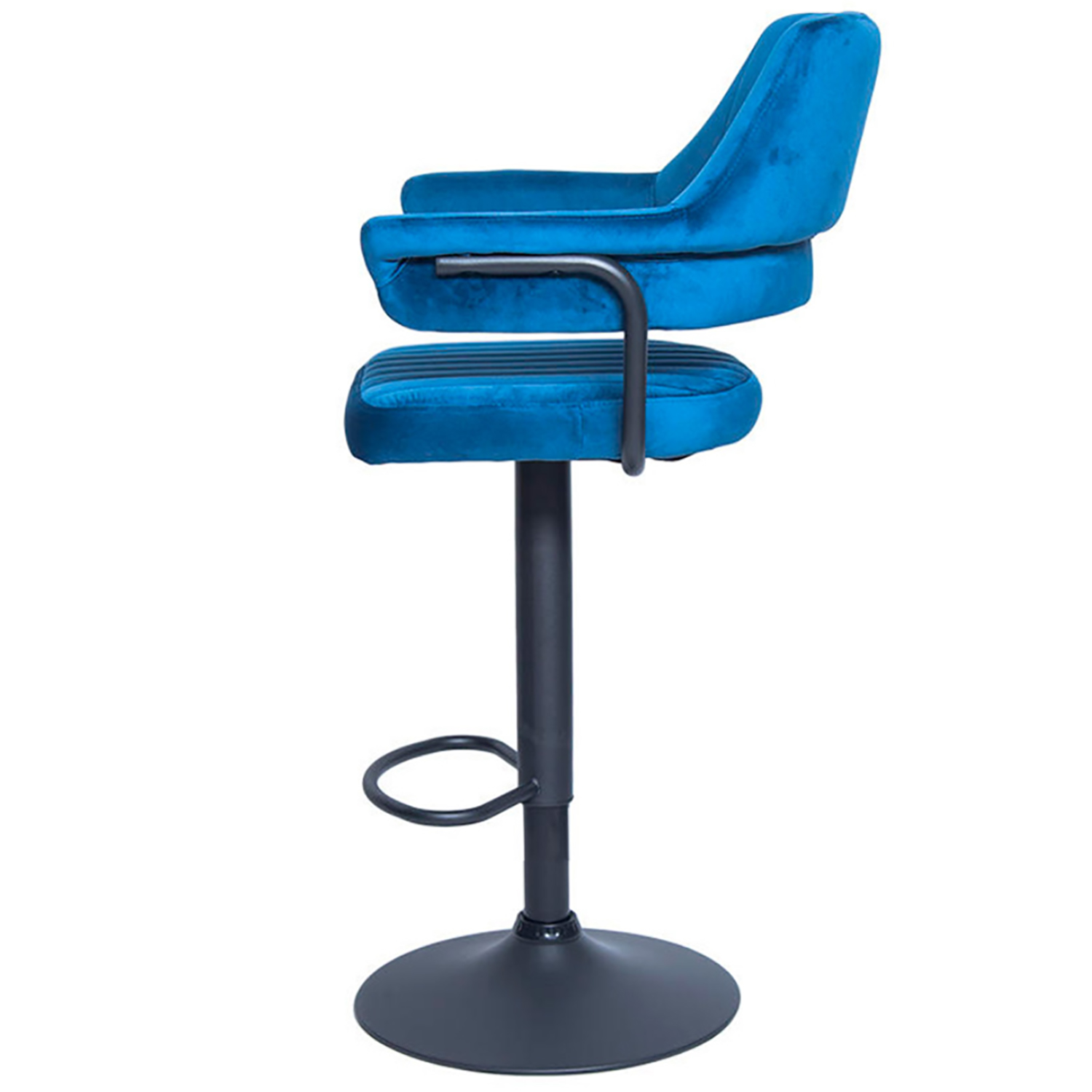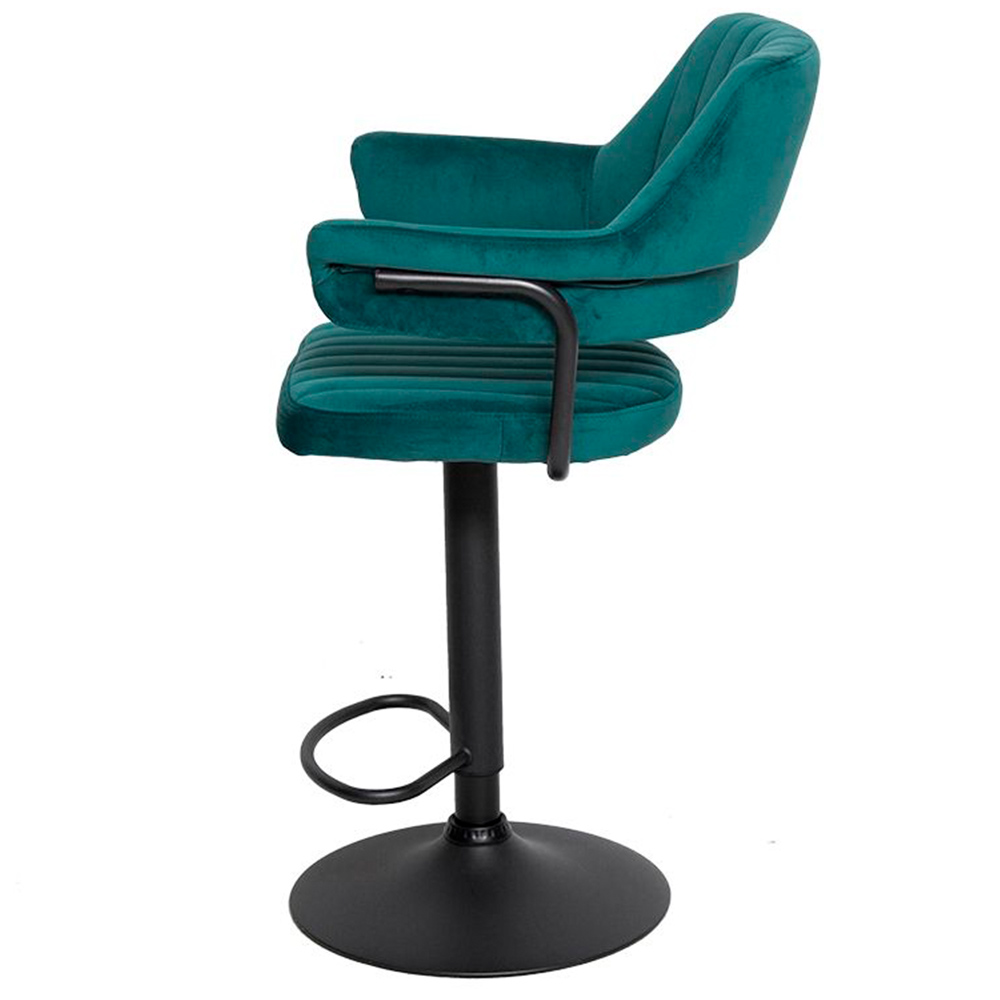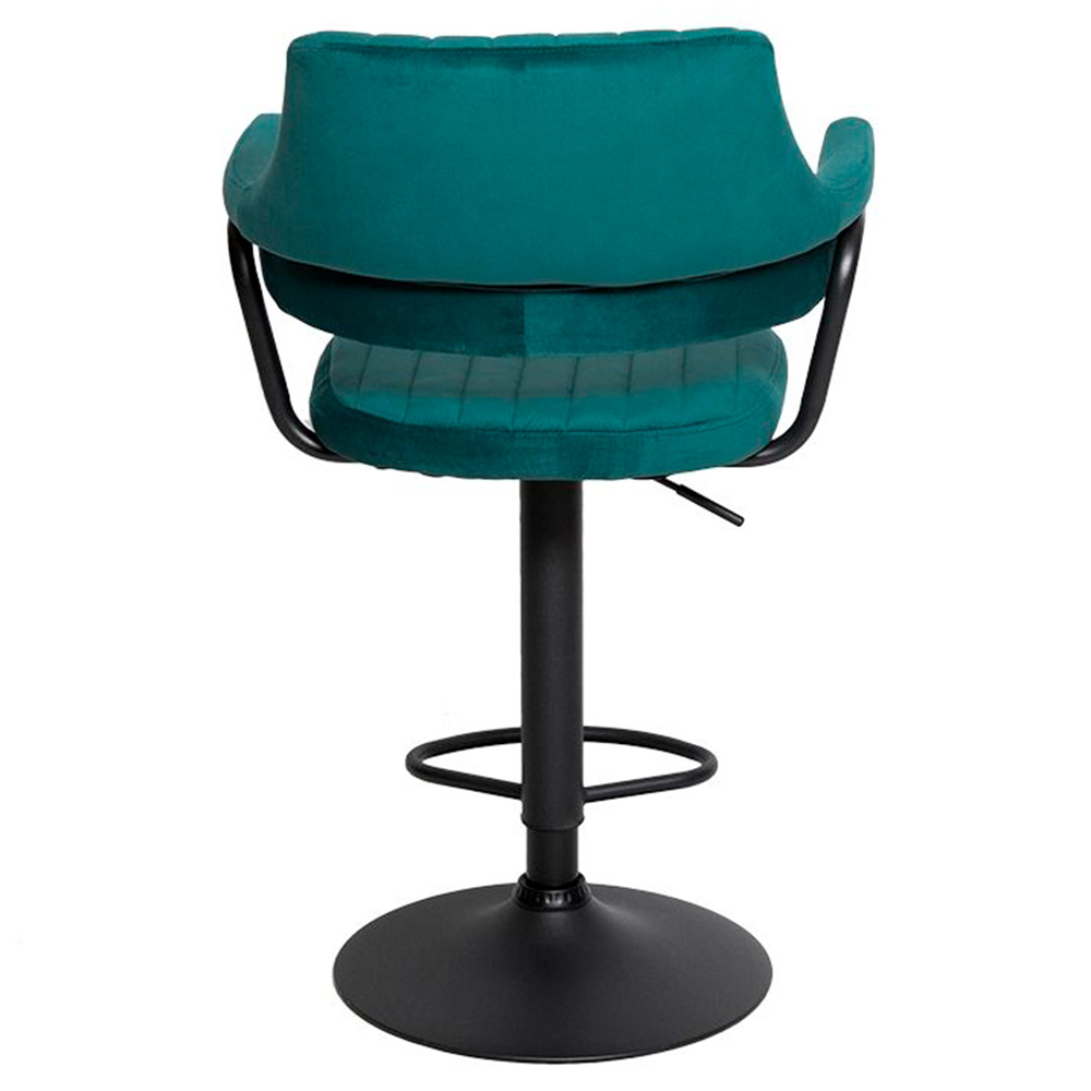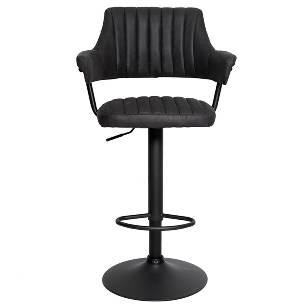 Сиденье и спинка имеют мягкую форму и дополнены стёжкой, благодаря чему посадка остаётся комфортной даже при длительном использовании. Обивка выполнена из велюра с коротким ворсом, приятного на ощупь и аккуратно выглядящего в интерьере. Модель подходит как для коммерческих заведений, так и для домашнего использования в зоне барной стойки.