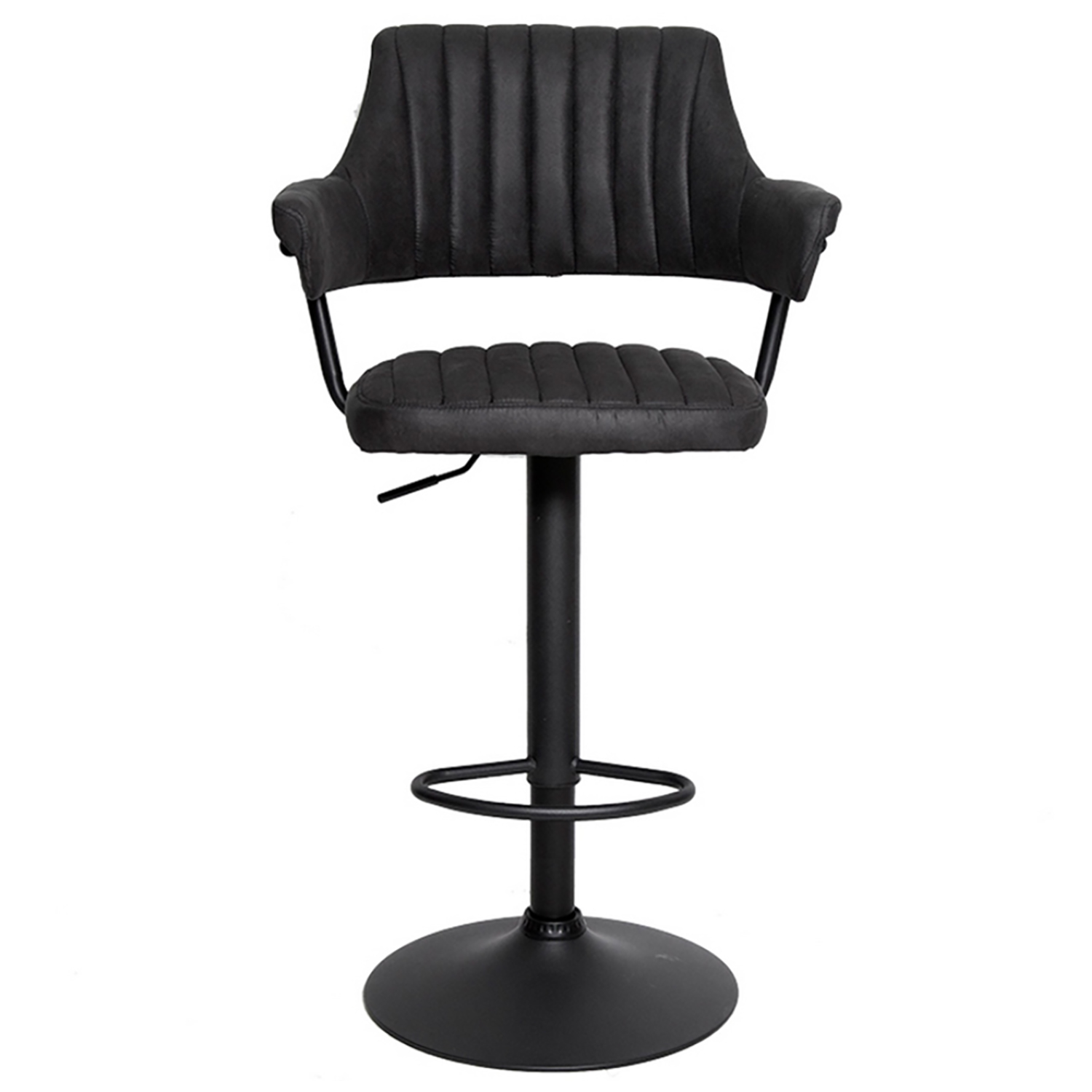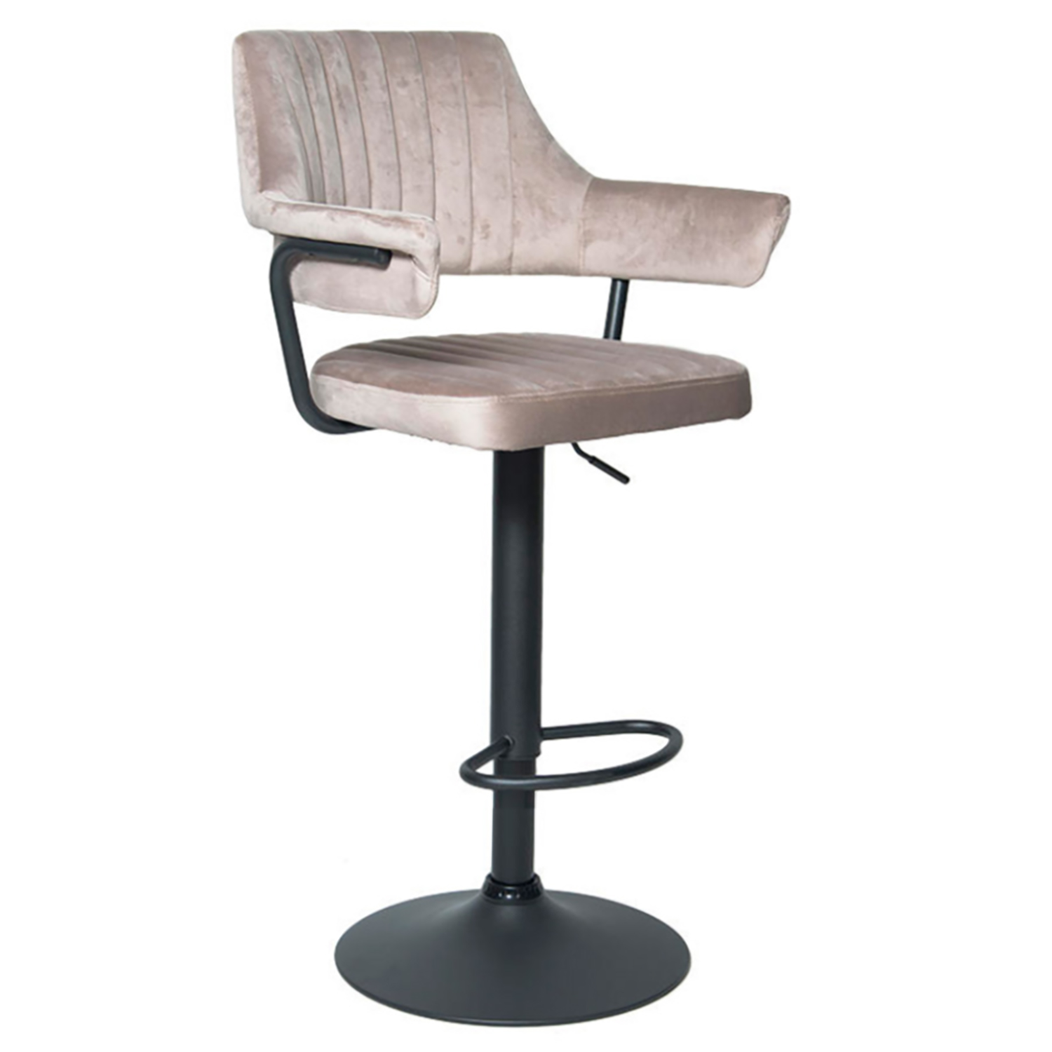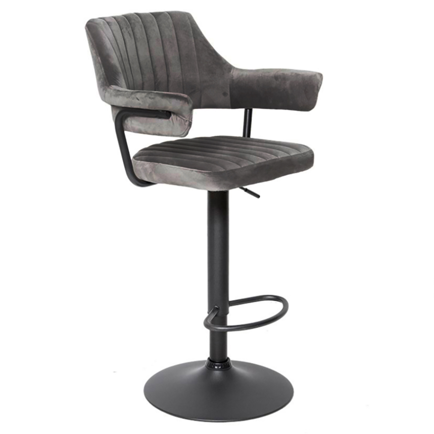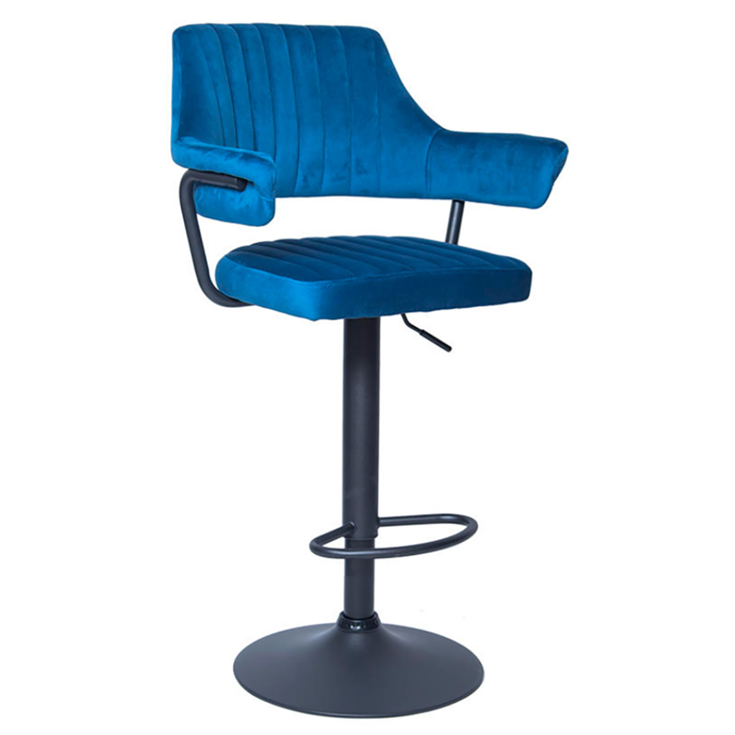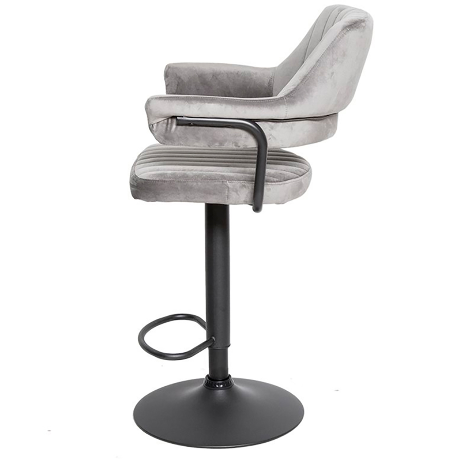 Сиденье и спинка имеют мягкую форму и дополнены стёжкой, благодаря чему посадка остаётся комфортной даже при длительном использовании. Обивка выполнена из велюра с коротким ворсом, приятного на ощупь и аккуратно выглядящего в интерьере. Модель подходит как для коммерческих заведений, так и для домашнего использования в зоне барной стойки.